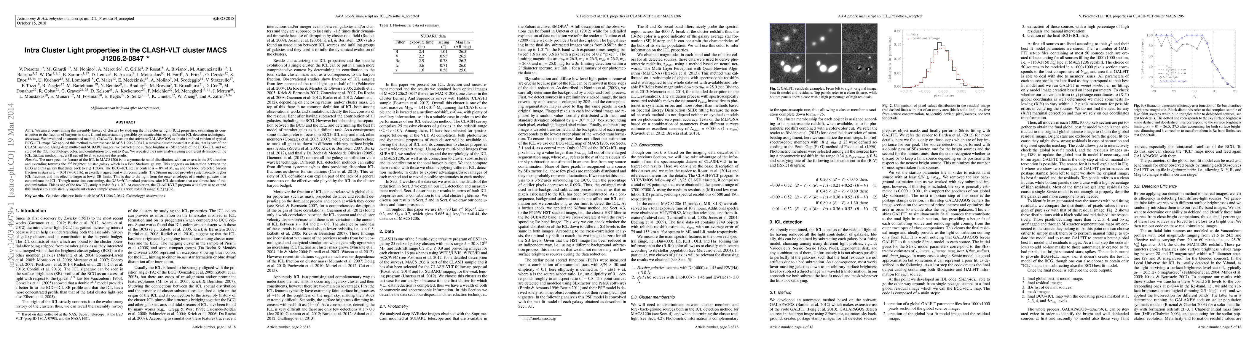 cluster light (ICL) properties, estimating its contribution to the fraction of