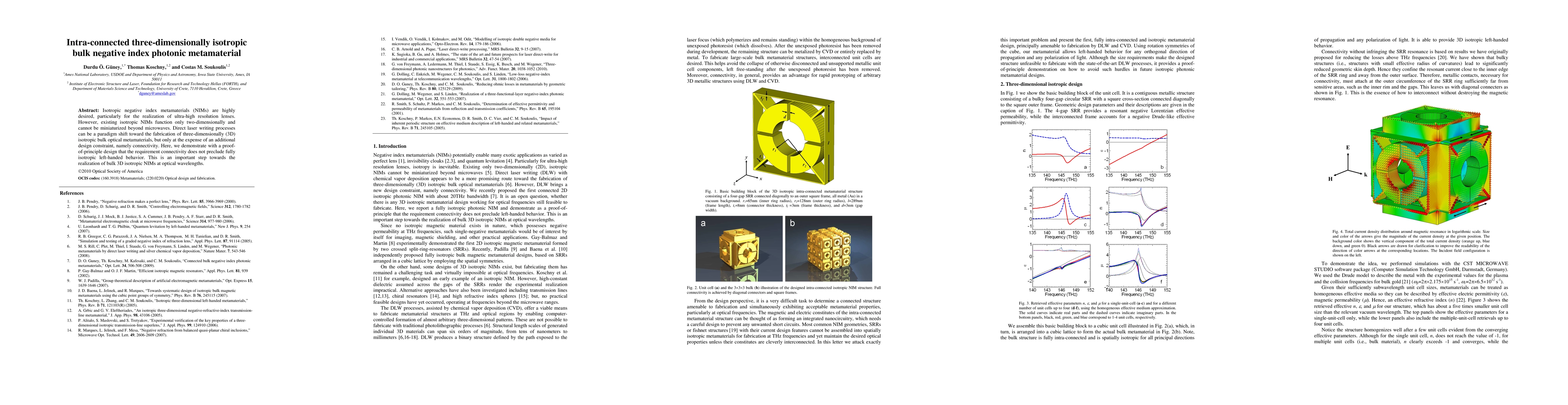 This paper demonstrates a proof of principle for a three-dimensionally isotropic bulk negative index photonic metamaterial that maintains full isotropic left-handed behavior despite connectivity constraints, marking a significant step towards miniaturized optical metamaterials for ultra-high resolution lenses.