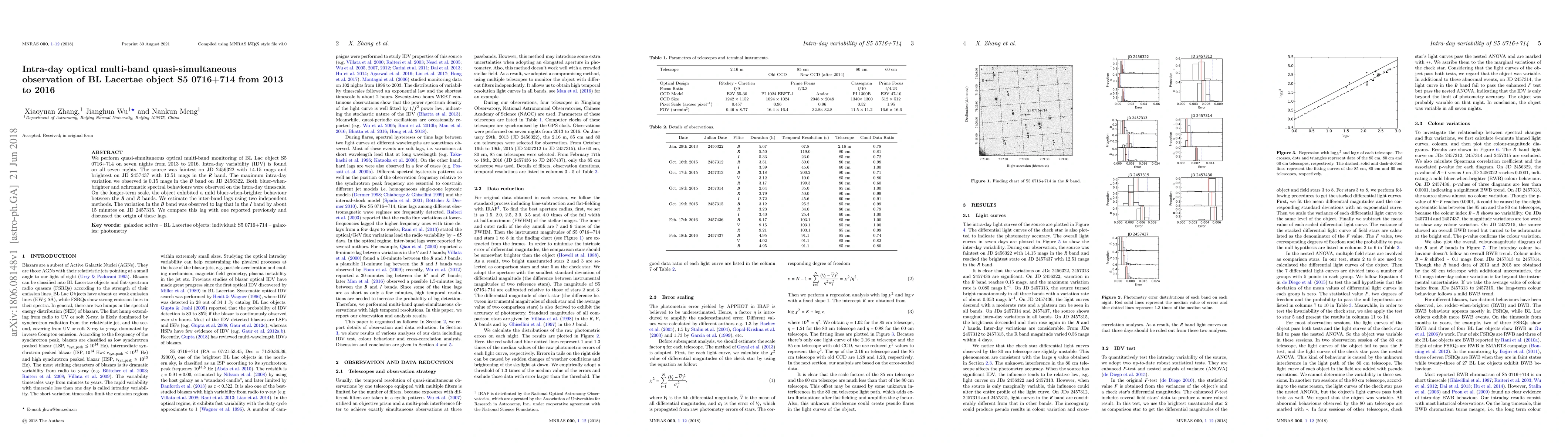 We perform quasi-simultaneous optical multi-band monitoring of BL Lac object S5 0716+714 on seven nights from 2013 to 2016. Intra-day variability (IDV) is found on all seven nights. The source was faintest on JD 2456322 with 14.15 mags and brightest on JD 2457437 with 12.51 mags in the $R$ band. The maximum intra-day variation we observed is 0.15 mags in the $B$ band on JD 2456322. Both bluer-when-brighter and achromatic spectral behaviours were observed on the intra-day timescale. On the longer-term scale, the object exhibited a mild bluer-when-brighter behaviour between the $B$ and $R$ bands. We estimate the inter-band lags using two independent methods. The variation in the $B$ band was observed to lag that in the $I$ band by about 15 minutes on JD 2457315. We compare this lag with one reported previously and discussed the origin of these lags.