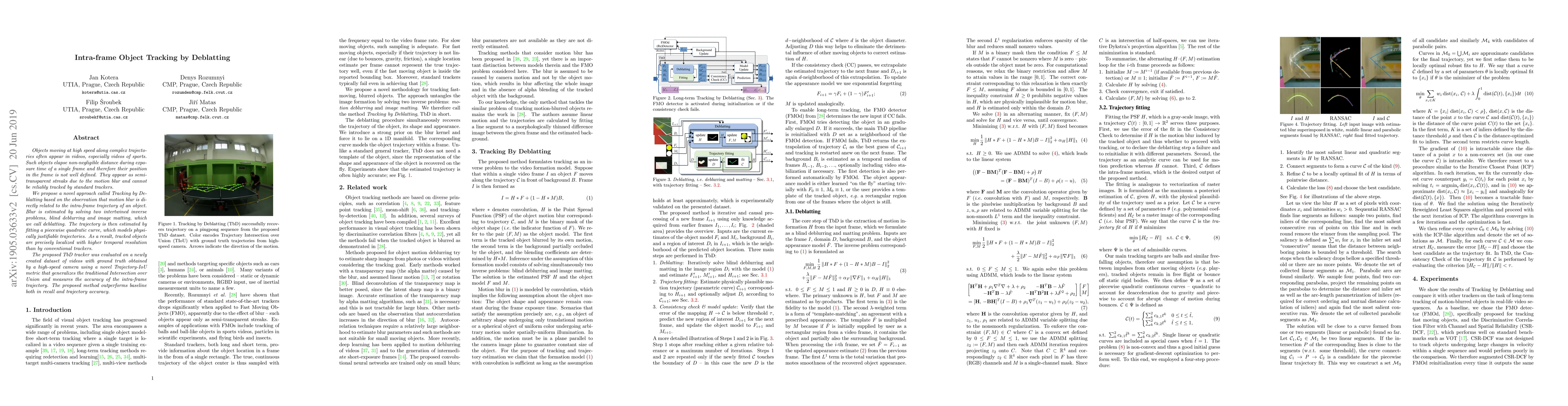Objects moving at high speed along complex trajectories often appear in videos, especially videos of sports. Such objects elapse non-negligible distance during exposure time of a single frame and therefore their position in the frame is not well defined. They appear as semi-transparent streaks due to the motion blur and cannot be reliably tracked by standard trackers. We propose a novel approach called Tracking by Deblatting based on the observation that motion blur is directly related to the intra-frame trajectory of an object. Blur is estimated by solving two intertwined inverse problems, blind deblurring and image matting, which we call deblatting. The trajectory is then estimated by fitting a piecewise quadratic curve, which models physically justifiable trajectories. As a result, tracked objects are precisely localized with higher temporal resolution than by conventional trackers. The proposed TbD tracker was evaluated on a newly created dataset of videos with ground truth obtained by a high-speed camera using a novel Trajectory-IoU metric that generalizes the traditional Intersection over Union and measures the accuracy of the intra-frame trajectory. The proposed method outperforms baseline both in recall and trajectory accuracy.