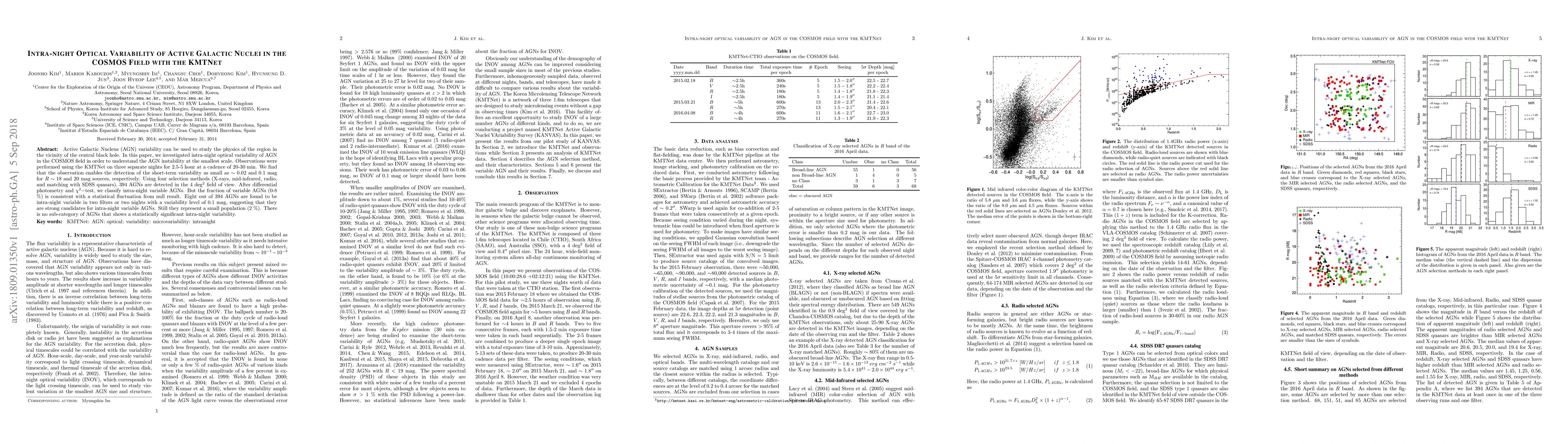 This study investigates the intra-night optical variability of AGNs in the COSMOS field using KMTNet, detecting short-term variability as small as 0.02 mag for $R \sim$ 18 mag sources. Despite identifying 8 out of 394 AGNs as potential intra-night variable candidates, the overall fraction of variable AGNs remains low (2%), indicating no significant sub-category shows notable intra-night variability.
