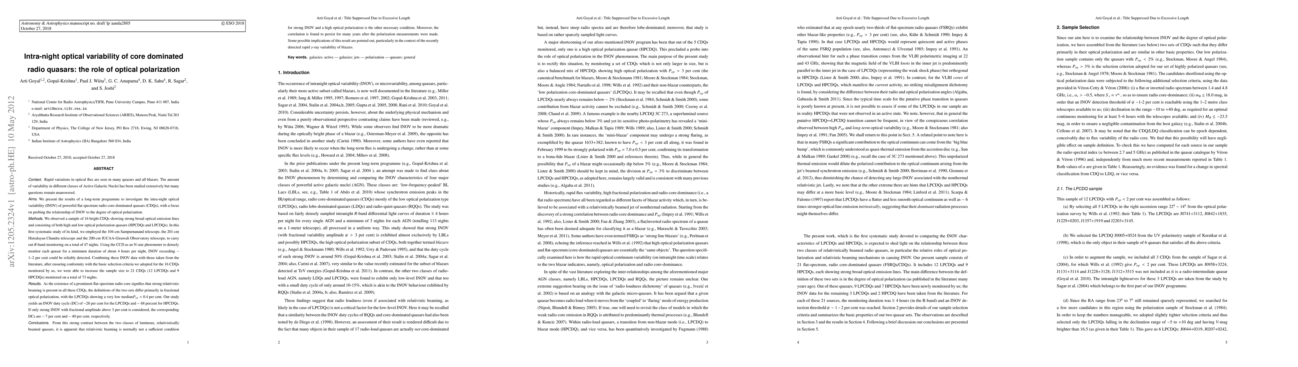 {Abridged} Rapid variations in optical flux are seen in many quasars and all blazars. The amount of variability in different classes of Active Galactic Nuclei has been studied extensively but many questions remain unanswered. We present the results of a long-term programme to investigate the intra-night optical variability (INOV) of powerful flat spectrum radio core-dominated quasars (CDQs), with a focus on probing the relationship of INOV to the degree of optical polarization. We observed a sample of 16 bright CDQs showing strong broad optical emission lines and consisting of both high and low optical polarization quasars (HPCDQs and LPCDQs). We employed ARIES, IIA, IGO telescopes, to carry out {\it R}-band monitoring on a total of 47 nights. Combining these INOV data with those taken from the literature, we were able to increase the sample size to 21 CDQs(12 LPCDQs and 9 HPCDQs) monitored on a total of 73 nights. As the existence of a prominent flat-spectrum radio core signifies that strong relativistic beaming is present in all these CDQs, the definitions of the two sets differ primarily in fractional optical polarization, the LPCDQs showing a very low median$ P_{op} \simeq$ 0.4 per cent. Our study yields an INOV duty cycle (DC) of $\sim$28 per cent for the LPCDQs and $\sim 68$ percent for HPCDQs. If only strong INOV with fractional amplitude above 3 per cent is considered, the corresponding DCs are $\sim$ 7 per cent and $\sim$ 40 per cent, respectively.From this strong contrast between the two classes of luminous, relativistically beamed quasars, it is apparent that relativistic beaming is normally not a sufficient condition for strong INOV and a high optical polarization is the other necessary condition.