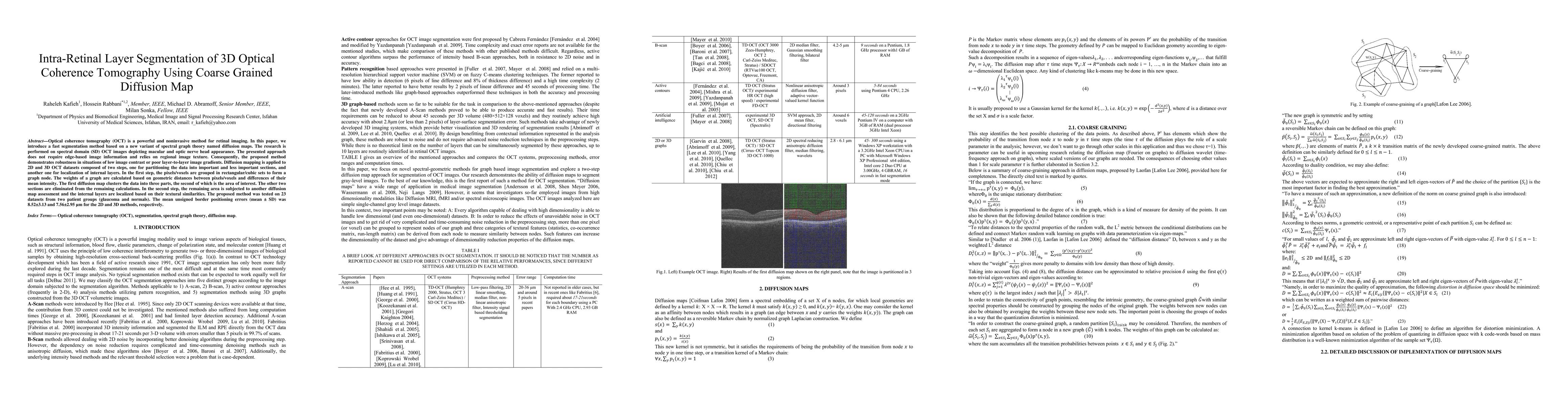 Researchers developed a new method for segmenting retinal layers from 3D optical coherence tomography images using diffusion maps, achieving robust results in low-contrast situations.