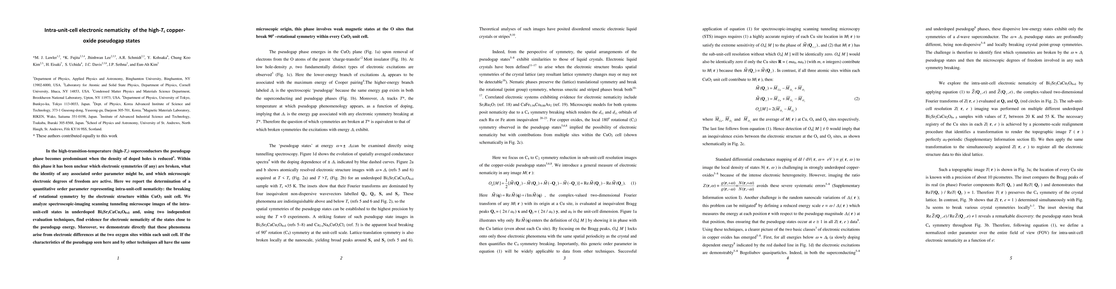 This research identifies intra-unit-cell electronic nematicity in high-Tc copper-oxide pseudogap states, revealing a breaking of rotational symmetry within CuO2 unit cells. Spectroscopic-imaging scanning tunneling microscopy shows evidence of nematicity in the pseudogap phase, indicating that electronic differences at the two oxygen sites drive this phenomenon.