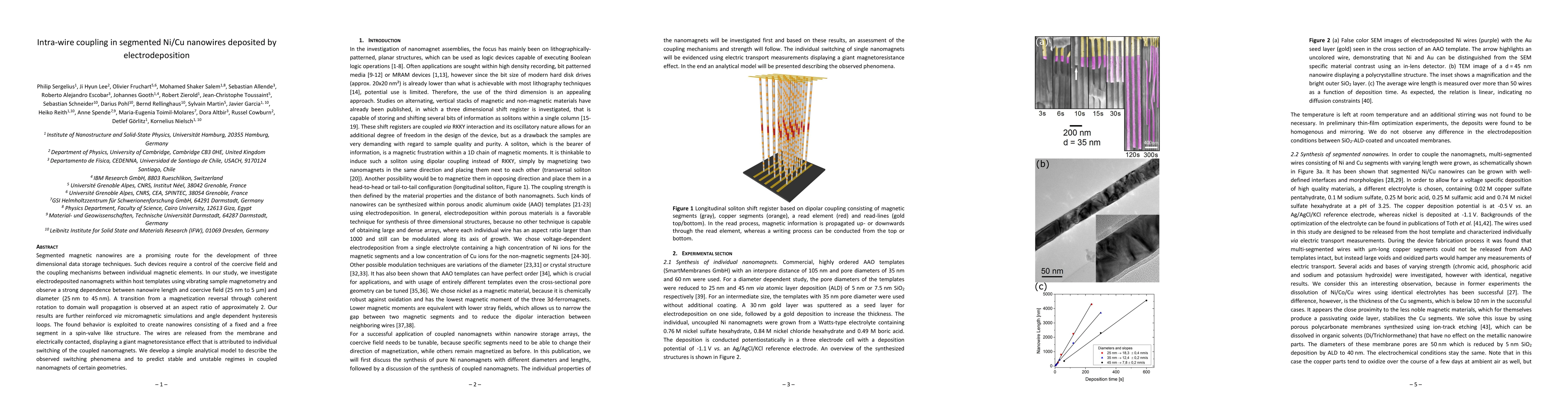 This study investigates electrodeposited segmented Ni/Cu nanowires, revealing a strong dependence of coercive field on length and diameter, and identifying a transition in magnetization reversal mechanisms. The research demonstrates giant magnetoresistance in spin-valve like structures and develops an analytical model to predict switching behaviors in coupled nanomagnets.