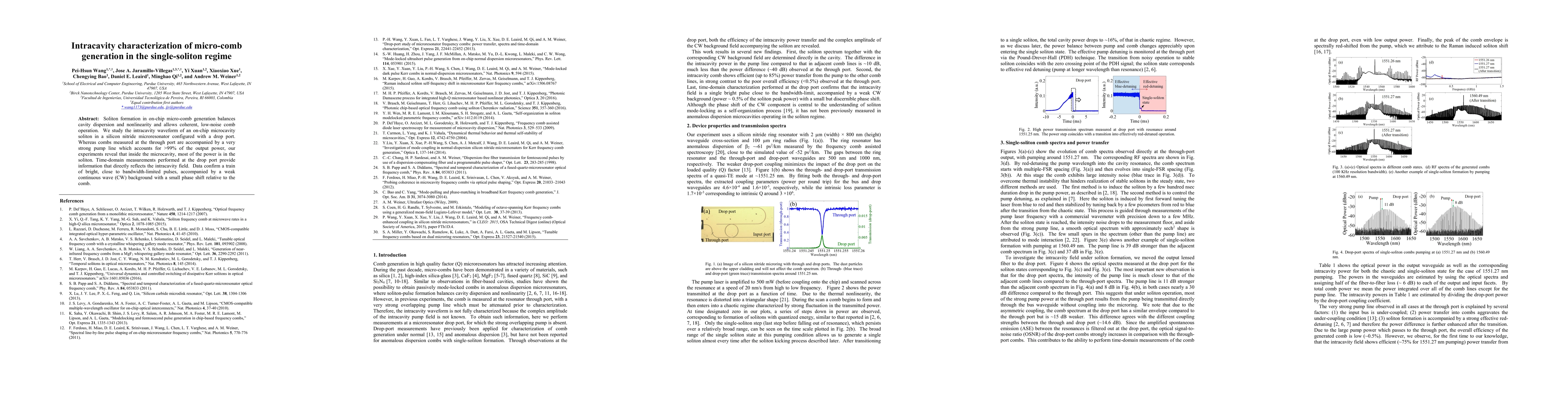 This paper investigates the intracavity waveform of a micro-comb soliton generated in a silicon nitride microresonator, revealing that most power resides in the soliton rather than the strong pump line observed at the output. Time-domain measurements show a train of nearly bandwidth-limited pulses with a weak continuous wave background.