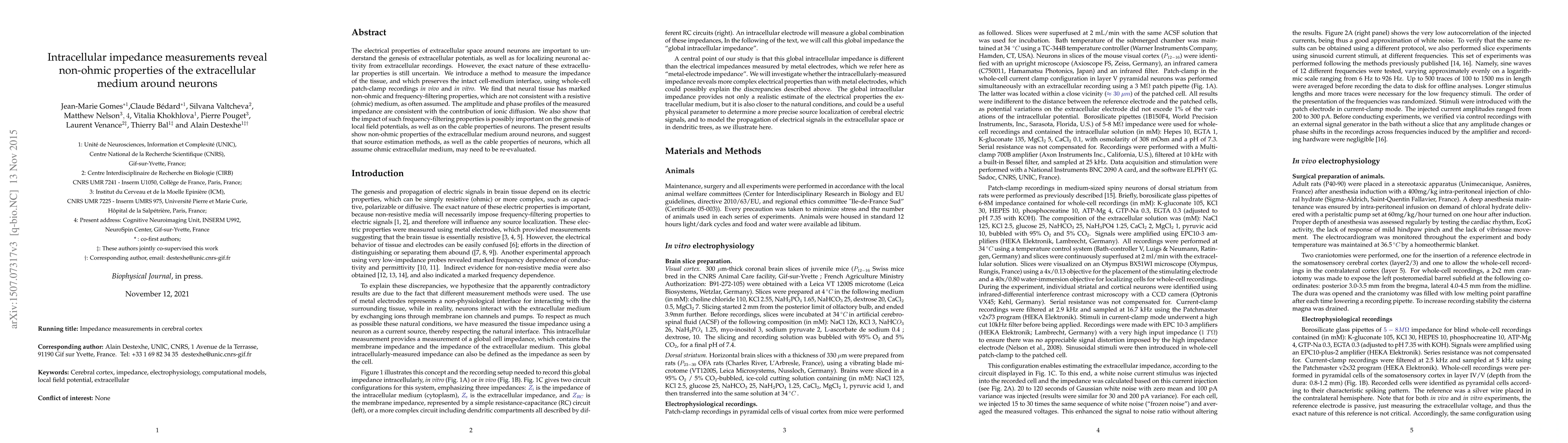 This study uses whole-cell patch-clamp recordings to measure the impedance of neural tissue, revealing non-ohmic and frequency-filtering properties of the extracellular medium, challenging the traditional assumption of a resistive medium. These findings suggest a re-evaluation of source estimation methods and neuronal cable properties.
