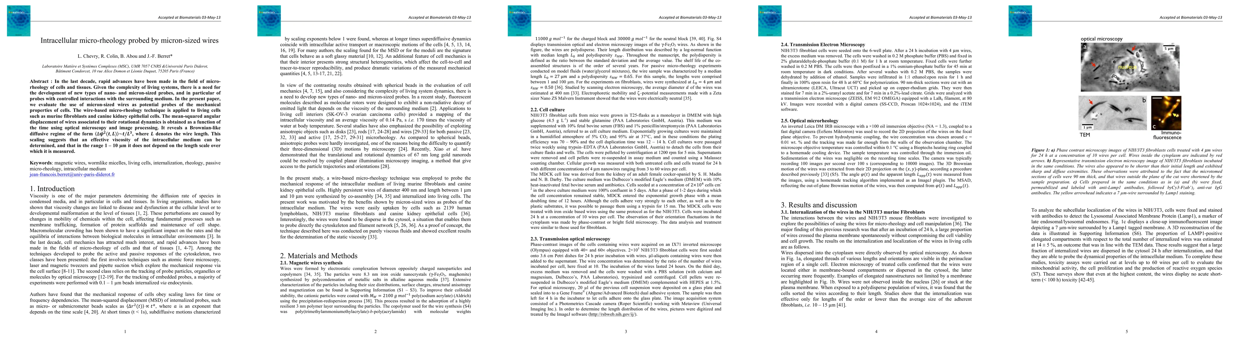 This paper evaluates micron-sized wires as probes for intracellular micro-rheology, demonstrating their application to living cells. The study reveals a Brownian-like diffusive regime, allowing for the determination of effective intracellular viscosity, which remains scale-independent within the 1-10 micrometer range.