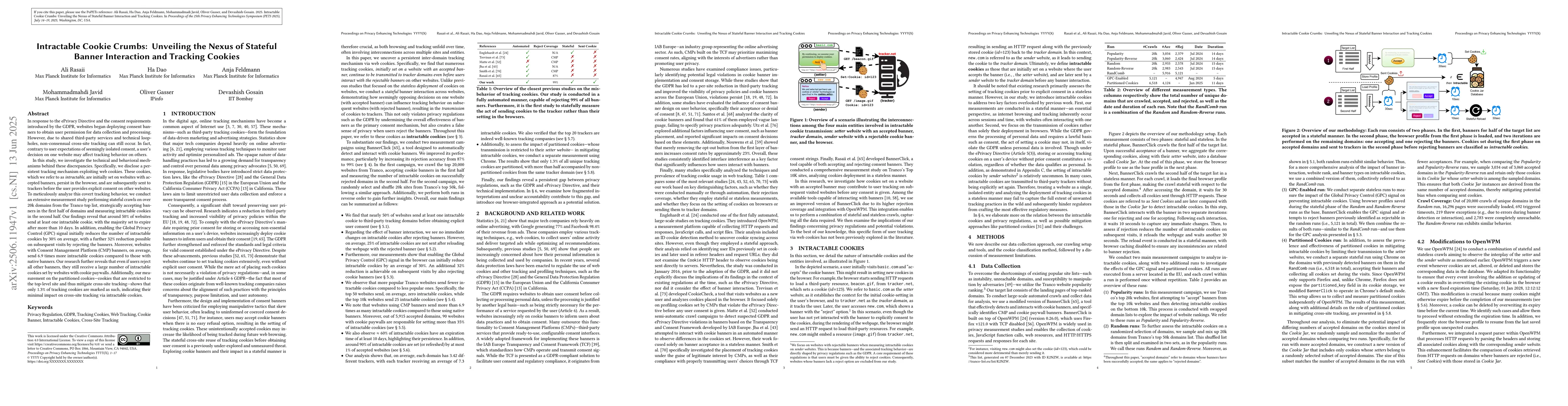 In response to the ePrivacy Directive and the consent requirements introduced by the GDPR, websites began deploying consent banners to obtain user permission for data collection and processing. However, due to shared third-party services and technical loopholes, non-consensual cross-site tracking can still occur. In fact, contrary to user expectations of seemingly isolated consent, a user's decision on one website may affect tracking behavior on others. In this study, we investigate the technical and behavioral mechanisms behind these discrepancies. Specifically, we disclose a persistent tracking mechanism exploiting web cookies. These cookies, which we refer to as intractable, are initially set on websites with accepted banners, persist in the browser, and are subsequently sent to trackers before the user provides explicit consent on other websites. To meticulously analyze this covert tracking behavior, we conduct an extensive measurement study performing stateful crawls on over 20k domains from the Tranco top list, strategically accepting banners in the first half of domains and measuring intractable cookies in the second half. Our findings reveal that around 50% of websites send at least one intractable cookie, with the majority set to expire after more than 10 days. In addition, enabling the Global Privacy Control (GPC) signal initially reduces the number of intractable cookies by 30% on average, with a further 32% reduction possible on subsequent visits by rejecting the banners. Moreover, websites with Consent Management Platform (CMP) banners, on average, send 6.9 times more intractable cookies compared to those with native banners. Our research further reveals that even if users reject all other banners, they still receive a large number of intractable cookies set by websites with cookie paywalls.