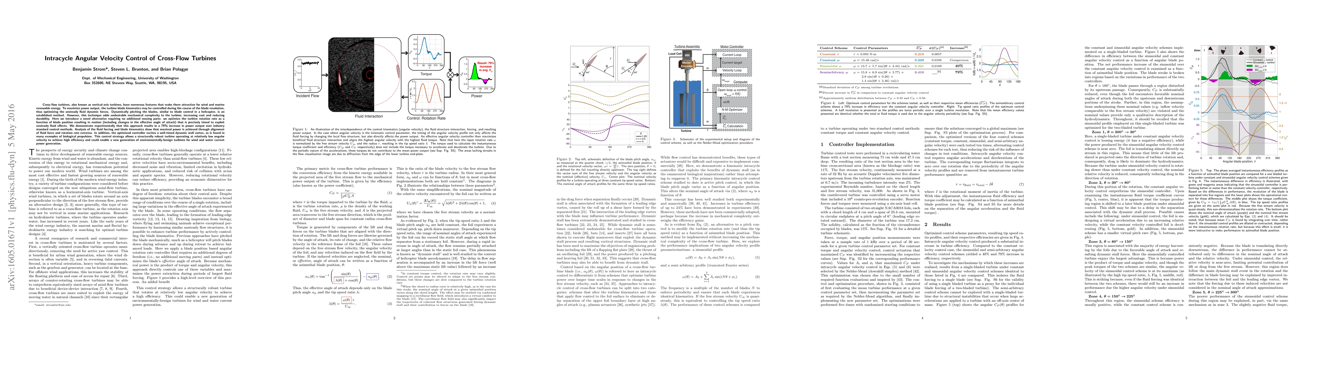 This paper presents a novel control strategy for cross-flow turbines to optimize power output by dynamically adjusting the rotation rate based on blade position, achieving a 79% increase in efficiency over traditional methods without adding mechanical complexity. The optimized control exploits unsteady fluid dynamics and aligns fluid forces with rotation rate extrema for maximal efficiency.
