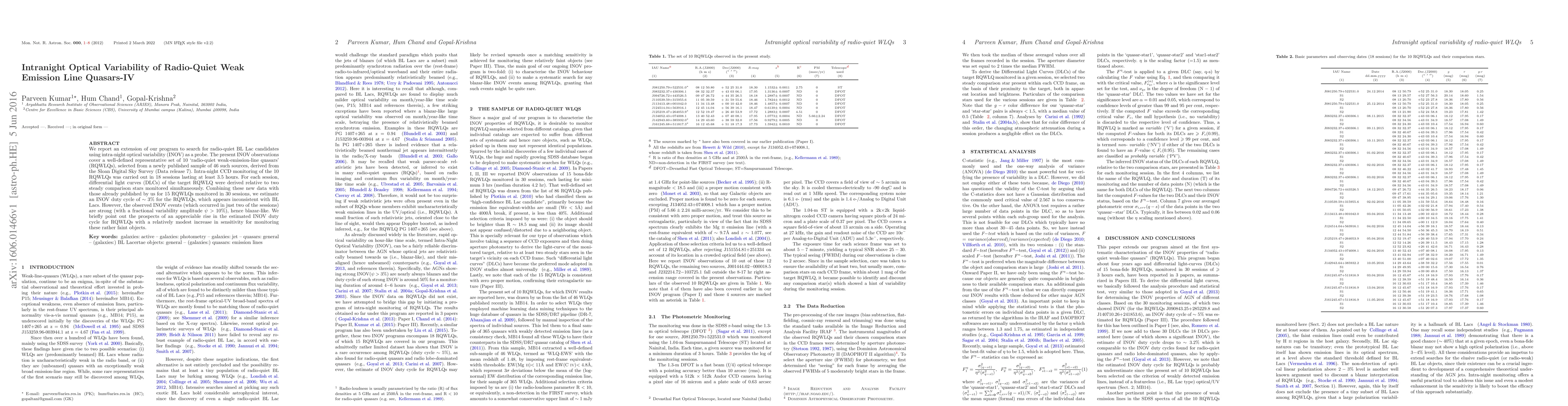 Researchers found that radio-quiet quasars exhibit significant intra-night optical variability, contradicting predictions for blazars, but hint at a possible increase in sensitivity could reveal more variability.