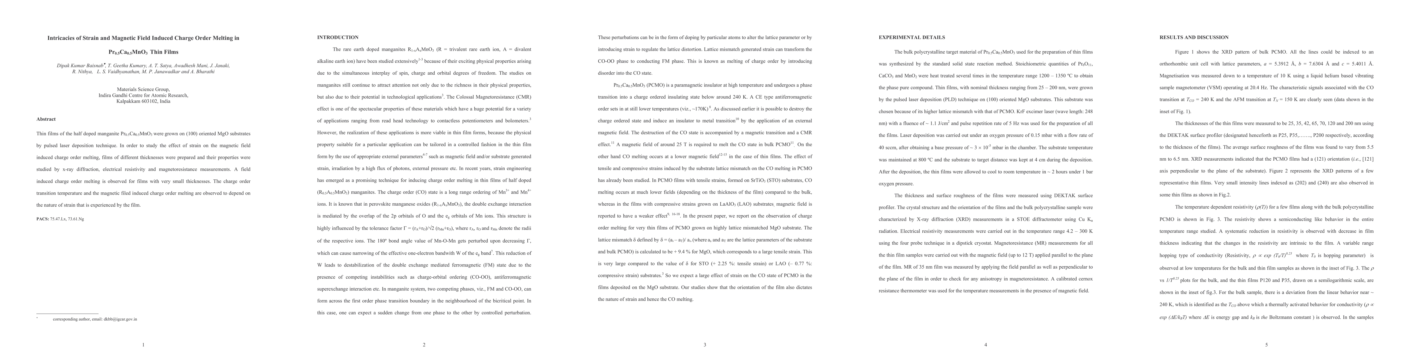 Researchers studied the effects of strain on magnetic field-induced charge order melting in thin films of Pr0.5Ca0.5MnO3, finding that film thickness and strain influence the transition temperatures.