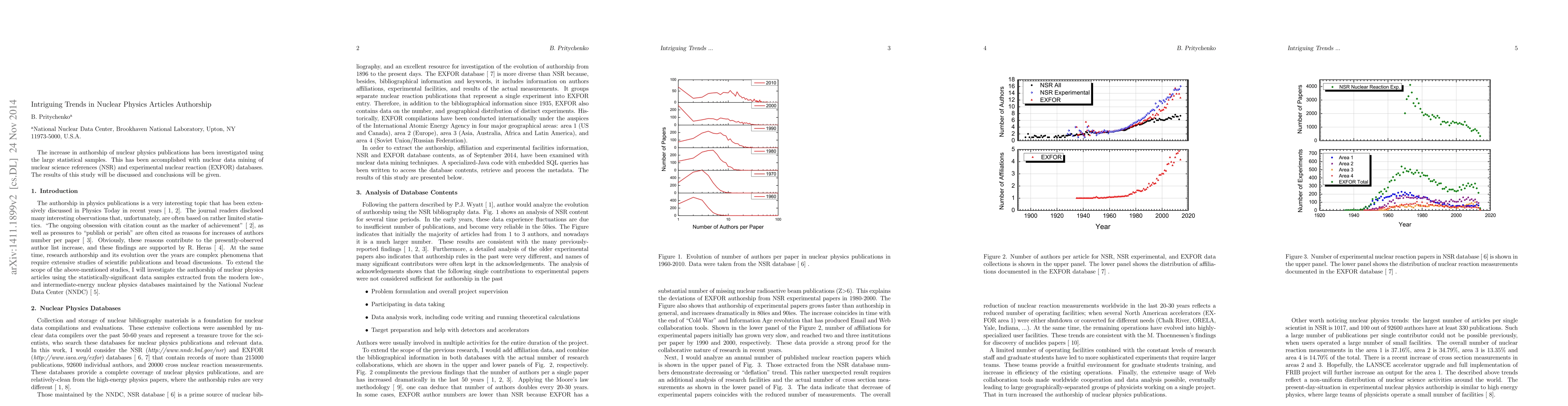 The increase in authorship of nuclear physics publications has been investigated using the large statistical samples. This has been accomplished with nuclear data mining of nuclear science references (NSR) and experimental nuclear reaction (EXFOR) databases. The results of this study will be discussed and conclusions will be given.