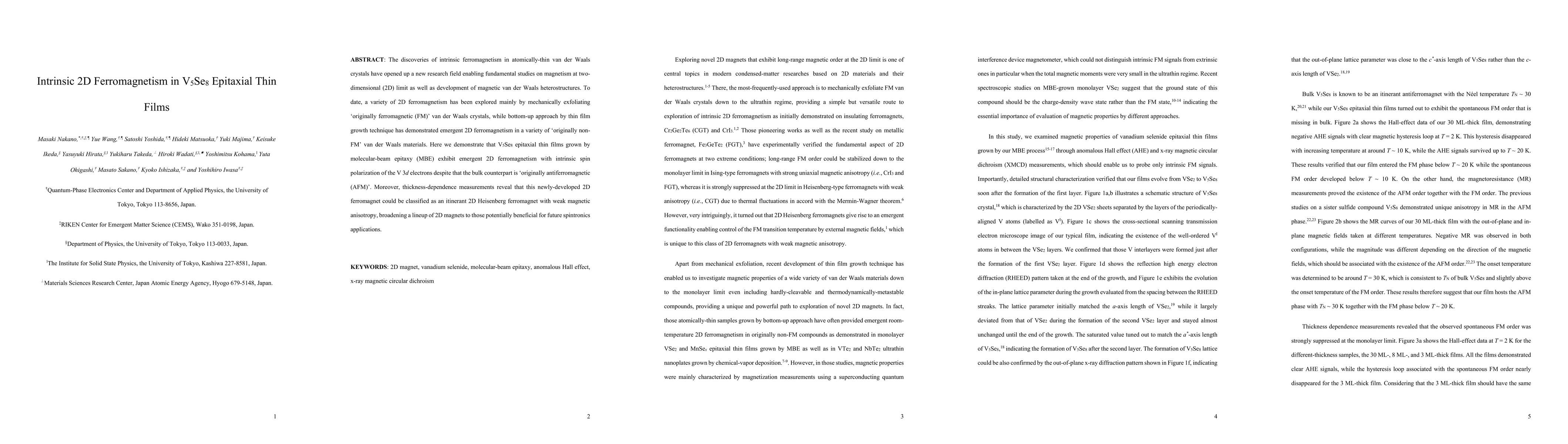 The paper presents a novel approach to induce 2D ferromagnetism in V5Se8 thin films via MBE growth, demonstrating emergent ferromagnetism in a material originally considered antiferromagnetic in bulk form.