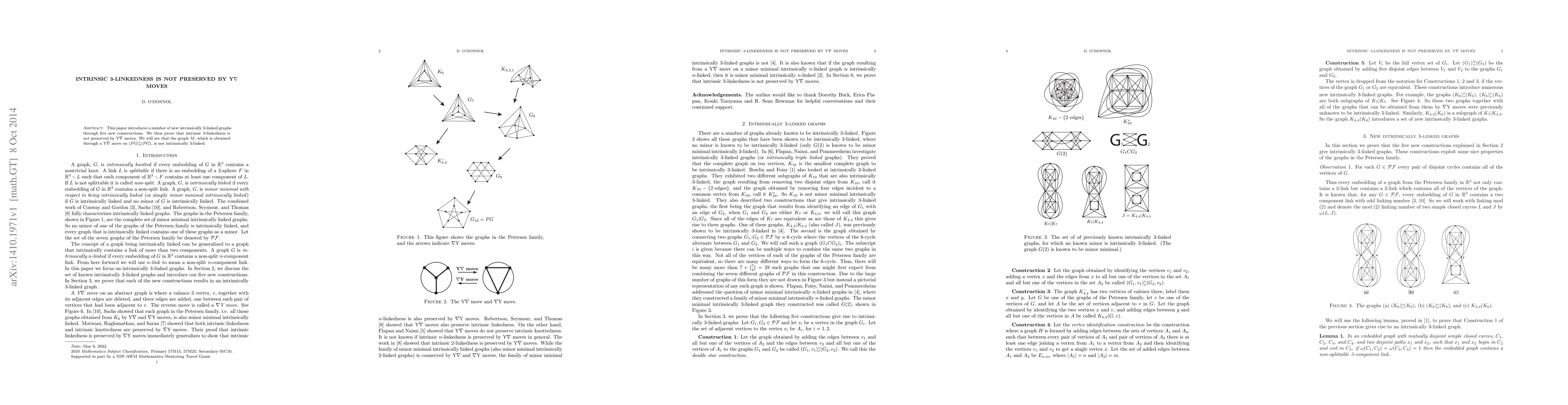This paper constructs new intrinsically 3-linked graphs and demonstrates that intrinsic 3-linkedness is not preserved under $\text{Y}\nabla$ moves, specifically showing that the graph $M$ resulting from a $\text{Y}\nabla$ move on $(PG)^*_*(PG)$ is not intrinsically 3-linked.