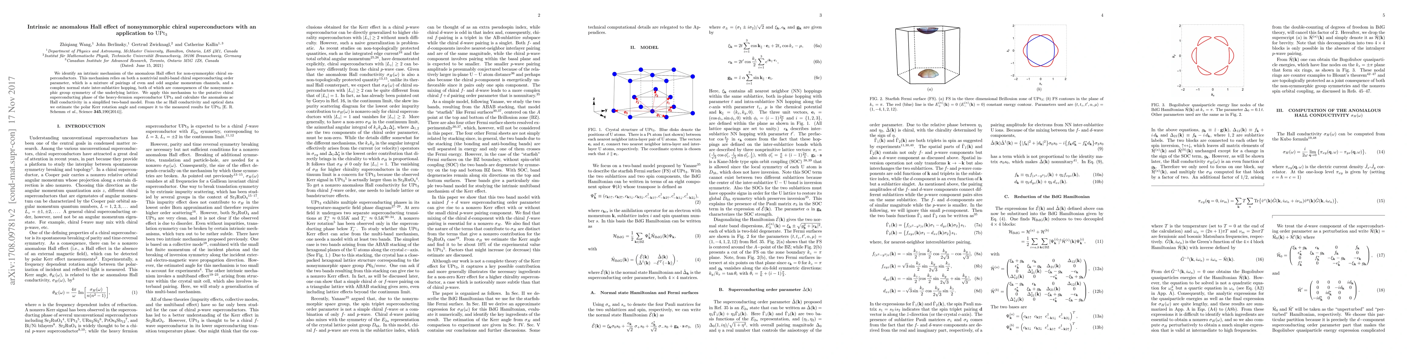 This paper identifies an intrinsic mechanism for the anomalous Hall effect in non-symmorphic chiral superconductors, attributing it to a complex superconducting order parameter and inter-sublattice hopping. The mechanism is applied to $\mathrm{UPt_3}$, estimating the polar Kerr rotation angle and comparing it to experimental results.