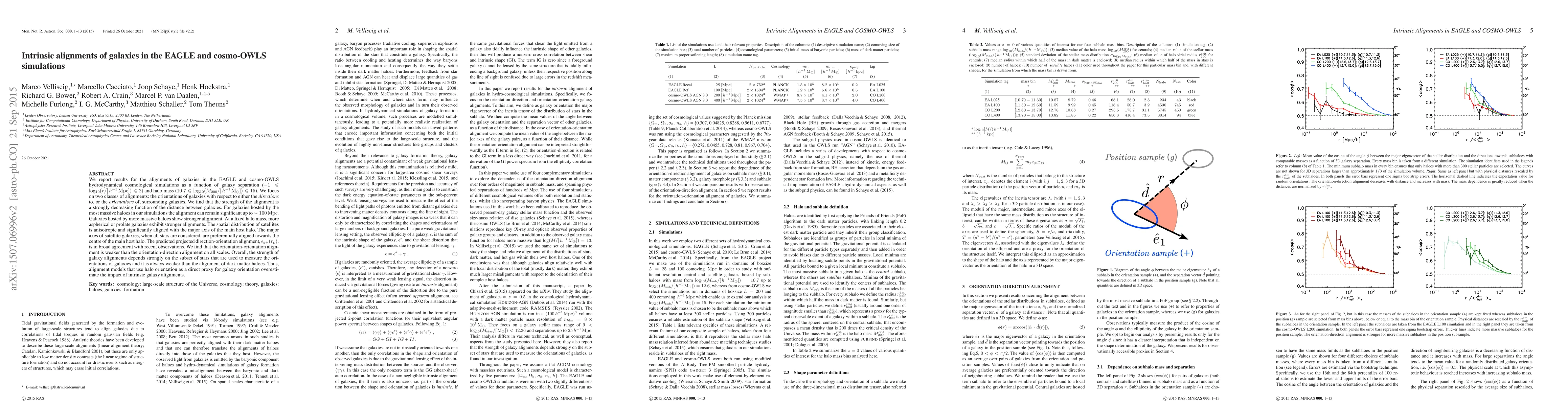 We report results for the alignments of galaxies in the EAGLE and cosmo-OWLS