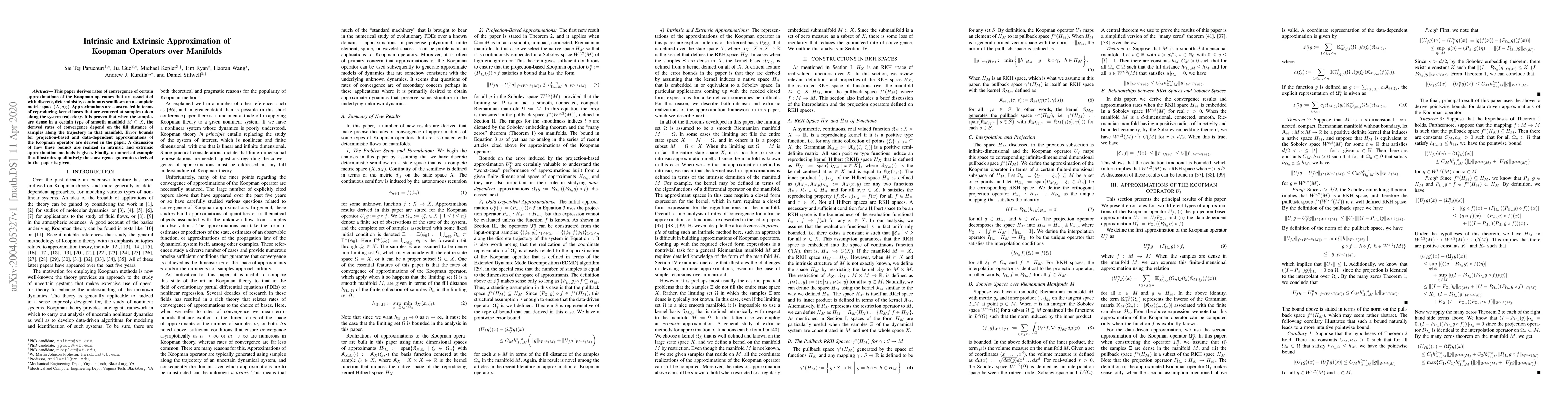This paper derives convergence rates for approximations of Koopman operators on smooth manifolds, showing that dense sampling along the manifold affects the error bounds. It discusses both intrinsic and extrinsic approximation methods and provides a numerical example to illustrate the theoretical results.