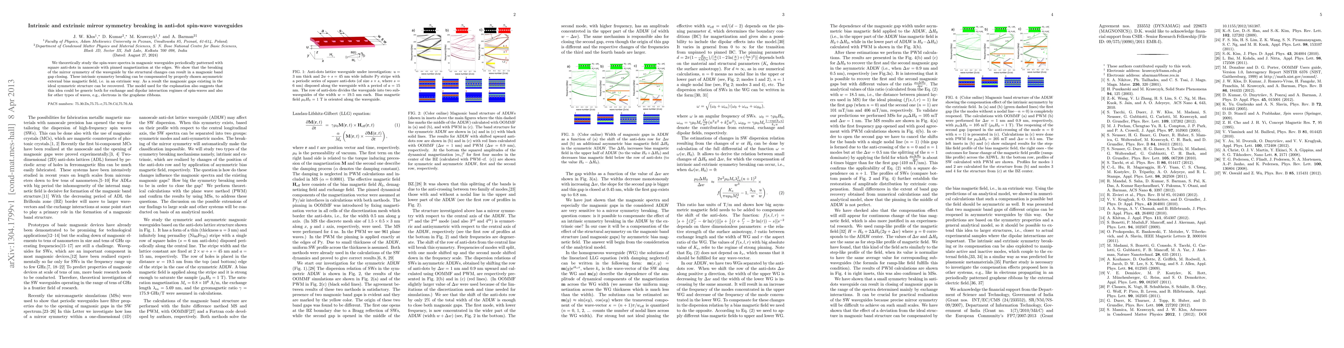This paper explores the impact of intrinsic and extrinsic symmetry breaking on spin-wave spectra in anti-dot spin-wave waveguides, demonstrating that structural changes can close the magnonic band gap, which can be compensated by an asymmetric external magnetic field. This approach can restore magnonic gaps and is applicable across different spin-wave regimes and other wave types.