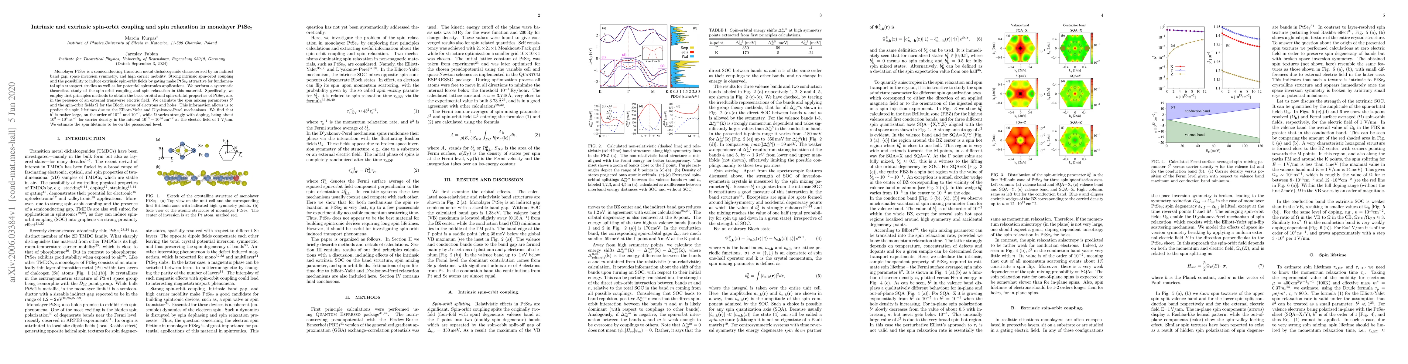 This paper investigates intrinsic and extrinsic spin-orbit coupling and spin relaxation in monolayer PtSe$_2$ using first principles methods. It finds large spin mixing parameters and significant spin-orbit fields, predicting spin lifetimes on the picosecond scale, which are promising for spintronics applications.