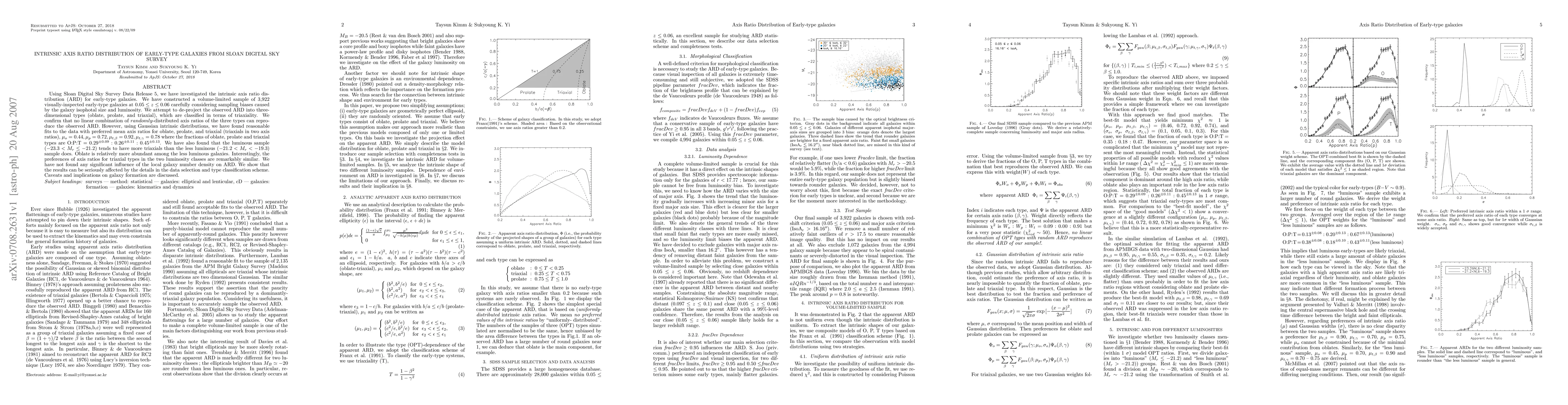 Using Sloan Digital Sky Survey Data Release 5, we have investigated the intrinsic axis ratio distribution (ARD) for early-type galaxies. We have constructed a volume-limited sample of 3,922 visually-inspected early-type galaxies at $0.05 \leq z \leq 0.06$ carefully considering sampling biases caused by the galaxy isophotal size and luminosity. We attempt to de-project the observed ARD into three-dimensional types (oblate, prolate, and triaxial), which are classified in terms of triaxiality. We confirm that no linear combination of $randomly$-distributed axis ratios of the three types can reproduce the observed ARD. However, using Gaussian intrinsic distributions, we have found reasonable fits to the data with preferred mean axis ratios for oblate, prolate, and triaxial (triaxials in two axis ratios), $\mu_o=0.44, \mu_p=0.72, \mu_{t,\beta}=0.92, \mu_{t,\gamma}=0.78$ where the fractions of oblate, prolate and triaxial types are \textrm{O:P:T}=0.29^{\pm0.09}:0.26^{\pm0.11}:0.45^{\pm0.13}$. We have also found that the luminous sample ($-23.3 < M_r \leq -21.2$) tends to have more triaxials than the less luminous ($-21.2 < M_r <-19.3$) sample does. Oblate is relatively more abundant among the less luminous galaxies. Interestingly, the preferences of axis ratios for triaxial types in the two luminosity classes are remarkably similar. We have not found any significant influence of the local galaxy number density on ARD. We show that the results can be seriously affected by the details in the data selection and type classification scheme. Caveats and implications on galaxy formation are discussed.