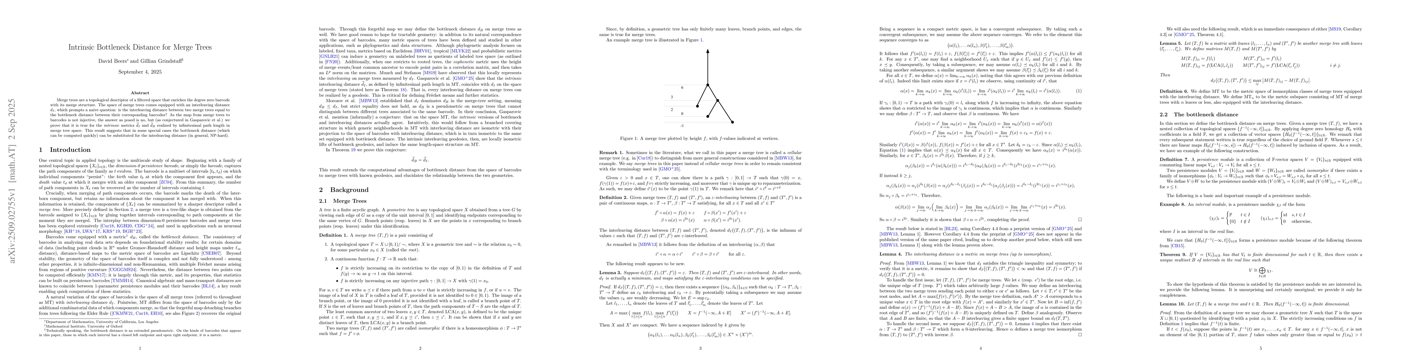 Merge trees are a topological descriptor of a filtered space that enriches the degree zero barcode with its merge structure. The space of merge trees comes equipped with an interleaving distance $d_I$, which prompts a naive question: is the interleaving distance between two merge trees equal to the bottleneck distance between their corresponding barcodes? As the map from merge trees to barcodes is not injective, the answer as posed is no, but (as conjectured in Gasparovic et al.) we prove that it is true for the \emph{intrinsic} metrics $\widehat{d}_I$ and $\widehat{d}_B$ realized by infinitesimal path length in merge tree space. This result suggests that in some special cases the bottleneck distance (which can be computed quickly) can be substituted for the interleaving distance (in general, NP-hard).