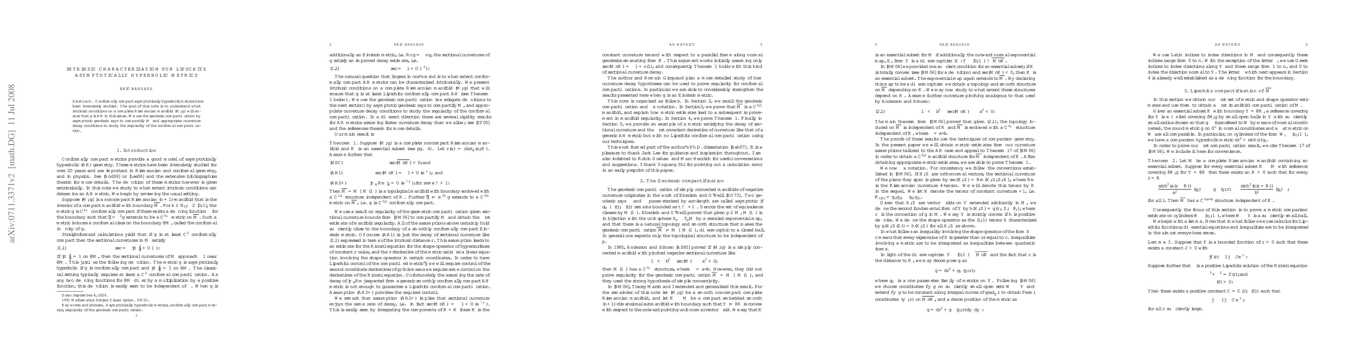 This paper investigates intrinsic conditions for a complete Riemannian manifold to be asymptotically hyperbolic, focusing on curvature decay and geodesic compactification, with implications for understanding conformally compact metrics.