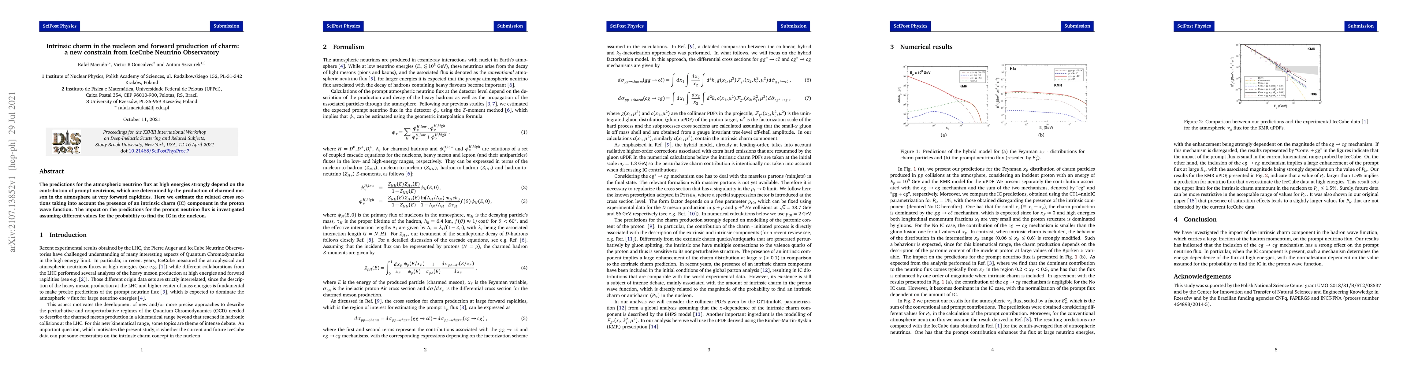 This paper investigates the impact of intrinsic charm in the nucleon on the forward production of charm, which influences the predictions for high-energy atmospheric neutrino flux. The study estimates cross sections for prompt neutrino production, considering different probabilities for intrinsic charm, using data from the IceCube Neutrino Observatory.