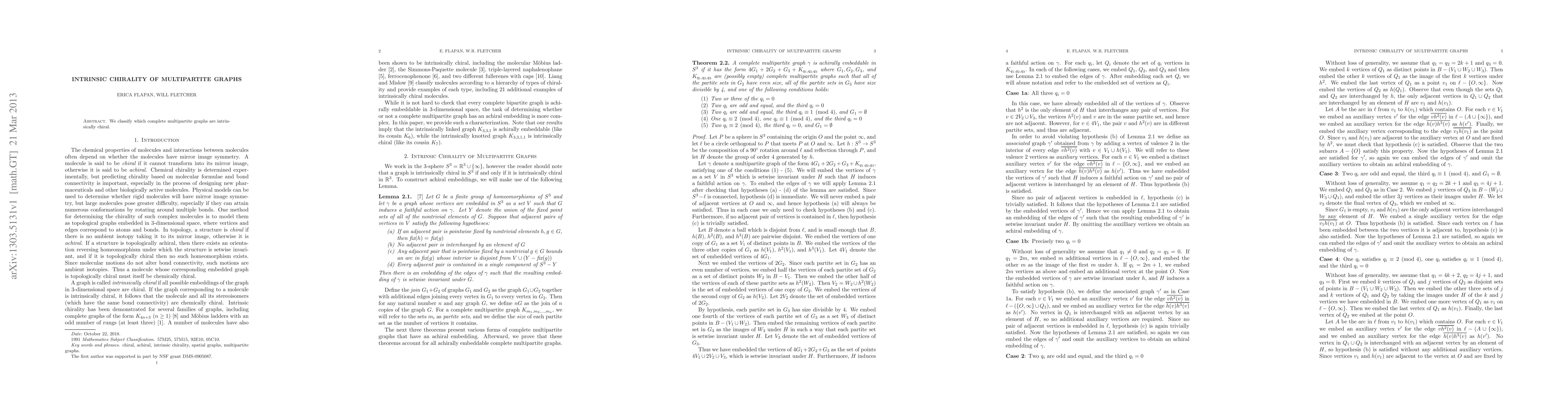 This paper classifies complete multipartite graphs that exhibit intrinsic chirality, a property where the graph cannot be transformed into another version of itself without changing its structure. The study focuses on determining which types of these graphs are inherently chiral.