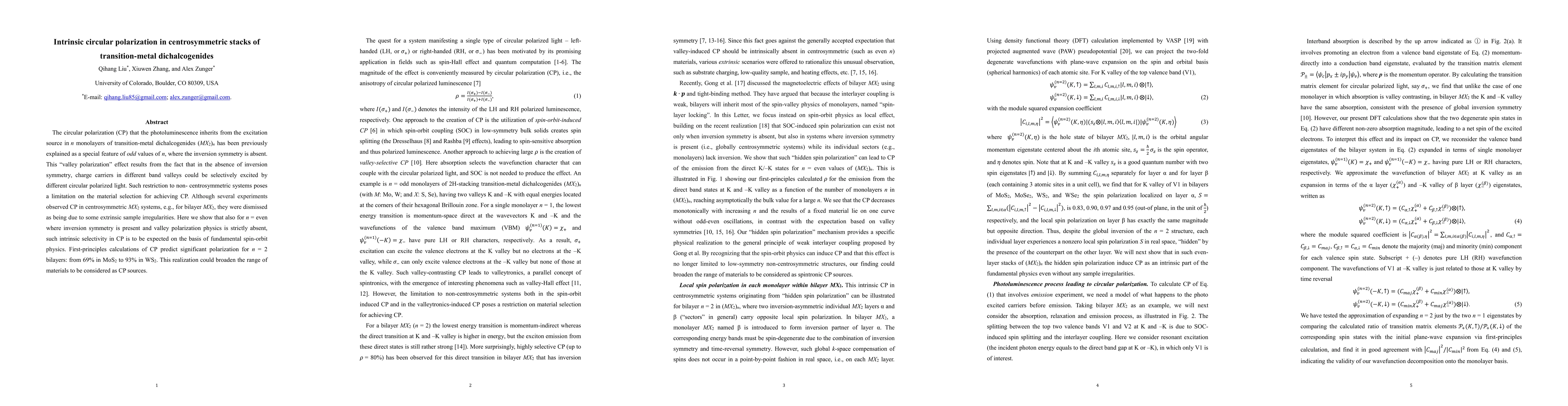 The circular polarization (CP) that the photoluminescence inherits from the excitation source in n monolayers of transition-metal dichalcogenides (MX2)n has been previously explained as a special feature of odd values of n, where the inversion symmetry is absent. This valley polarization effect results from the fact that in the absence of inversion, charge carriers in different band valleys could be selectively excited by different circular polarized light. Such restriction to non-centrosymmetric systems poses a limitation on the material selection for achieving CP. Although several experiments observed CP in centrosymmetric MX2 systems e.g., for bilayer in MX2, they were dismissed as being due to some extrinsic sample irregularities. Here we show that also for n = even where inversion symmetry is present and valley polarization physics is strictly absent, such intrinsic selectivity in CP is to be expected on the basis of fundamental spin-orbit physics. First-principles calculations of CP predict significant polarization for n = 2 bilayers: from 69% in MoS2 to 93% in WS2. This realization could broaden the range of materials to be considered as CP sources.