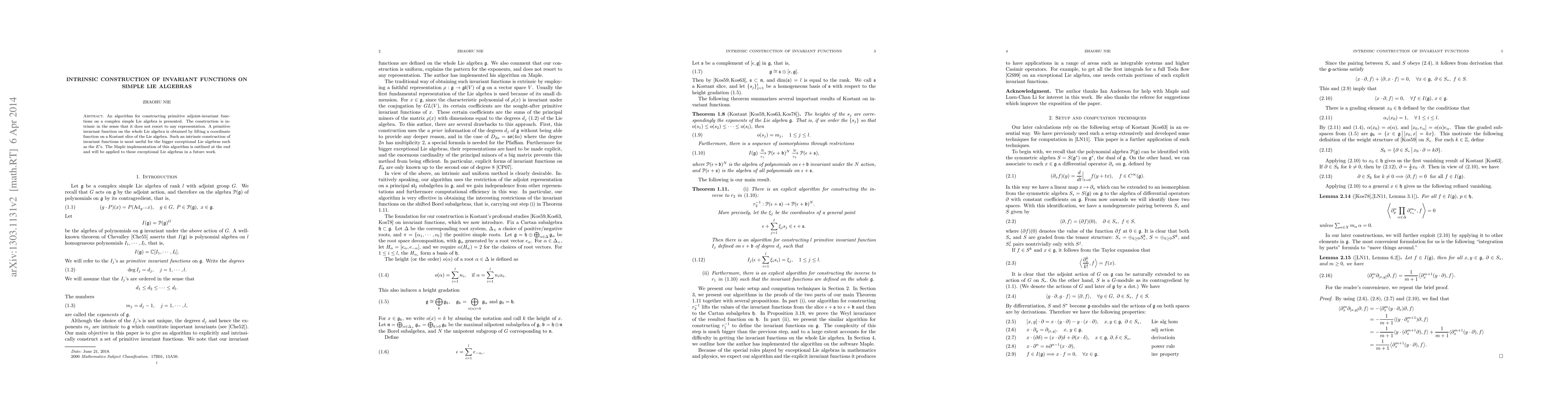 An algorithm for constructing primitive adjoint-invariant functions on a complex simple Lie algebra is presented. The construction is intrinsic in the sense that it does not resort to any representation. A primitive invariant function on the whole Lie algebra is obtained by lifting a coordinate function on a Kostant slice of the Lie algebra. Such an intrinsic construction of invariant functions is most useful for the bigger exceptional Lie algebras such as the E's. The Maple implementation of this algorithm is outlined at the end and will be applied to these exceptional Lie algebras in a future work.