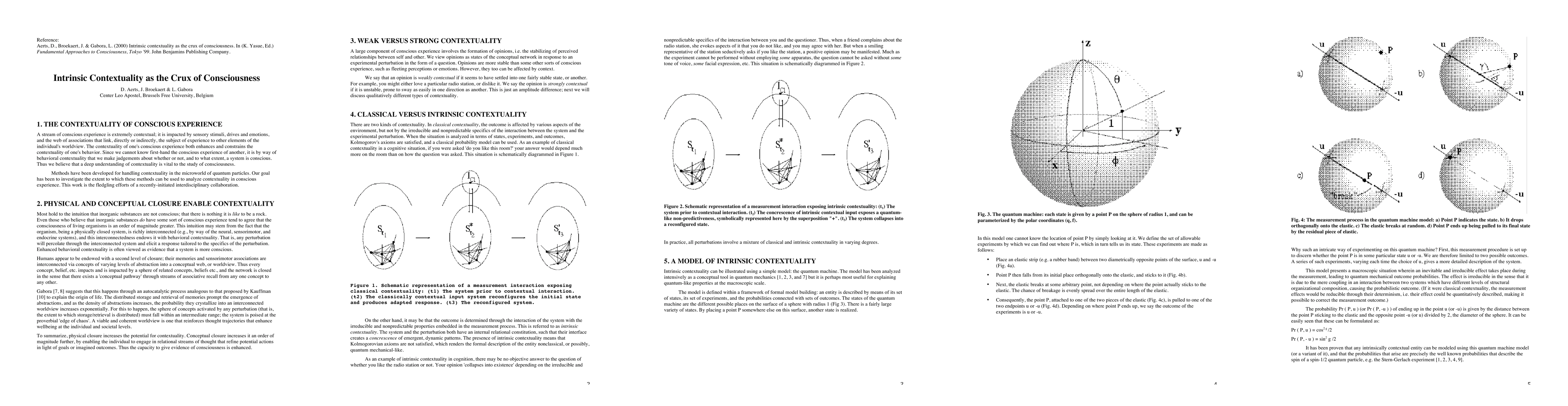 A stream of conscious experience is extremely contextual; it is impacted by sensory stimuli, drives and emotions, and the web of associations that link, directly or indirectly, the subject of experience to other elements of the individual's worldview. The contextuality of one's conscious experience both enhances and constrains the contextuality of one's behavior. Since we cannot know first-hand the conscious experience of another, it is by way of behavioral contextuality that we make judgements about whether or not, and to what extent, a system is conscious. Thus we believe that a deep understanding of contextuality is vital to the study of consciousness. Methods have been developed for handling contextuality in the microworld of quantum particles. Our goal has been to investigate the extent to which these methods can be used to analyze contextuality in conscious experience. This work is the fledgling efforts of a recently-initiated interdisciplinary collaboration.