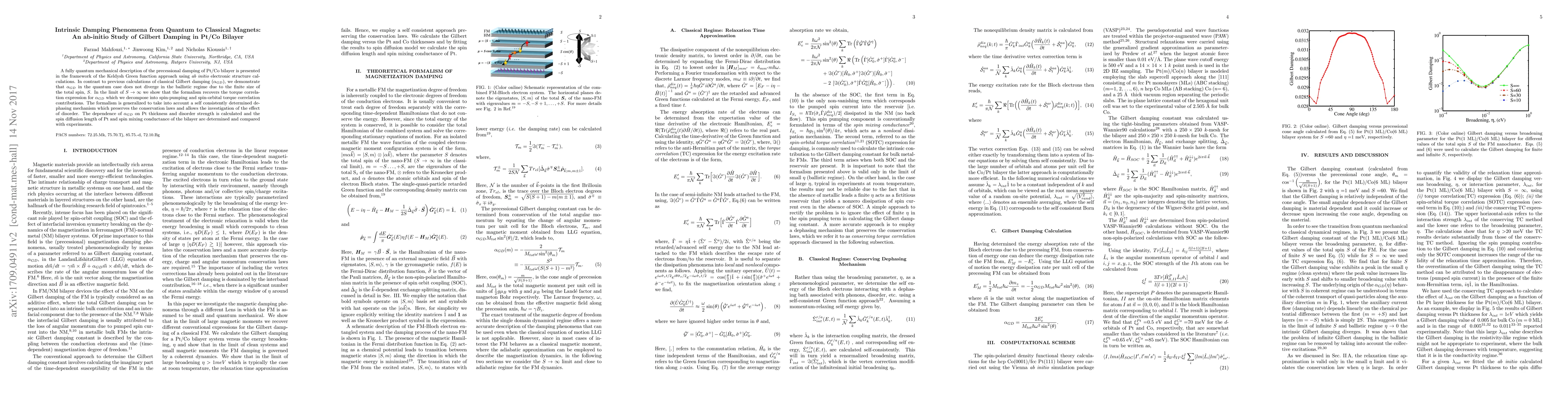 This paper presents an ab-initio quantum mechanical study of Gilbert damping in Pt/Co bilayers using the Keldysh Green function approach, showing that quantum effects prevent divergence in damping and generalizes the formalism to include disorder effects. The study determines spin diffusion length and spin mixing conductance, comparing results with experimental data.