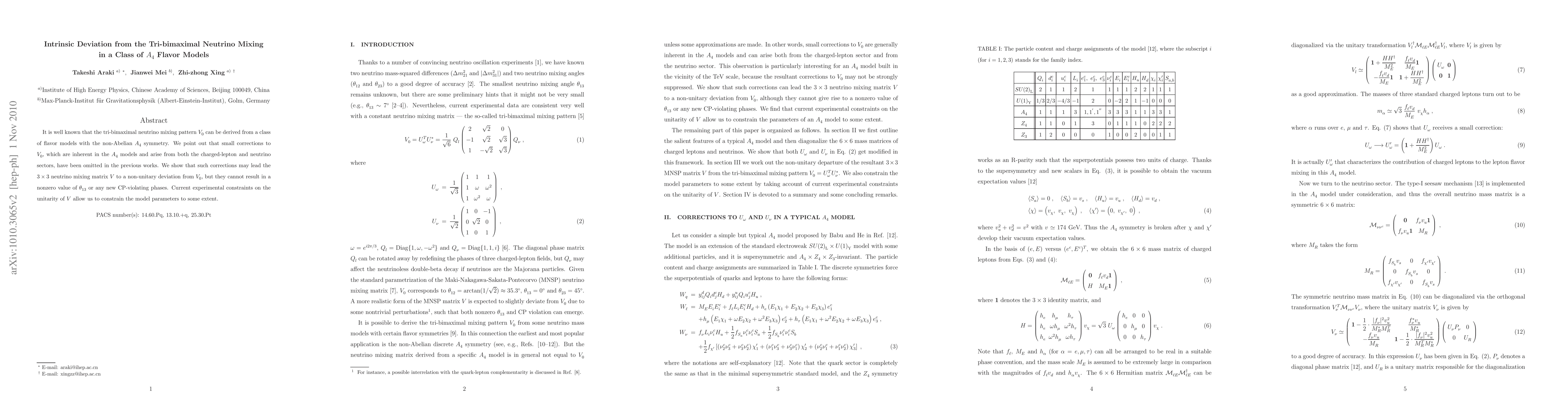Researchers found that small corrections to a certain neutrino mixing pattern can lead to a non-unitary deviation from the predicted pattern, but these deviations do not result in new CP-violating phases or a nonzero value for theta_13.