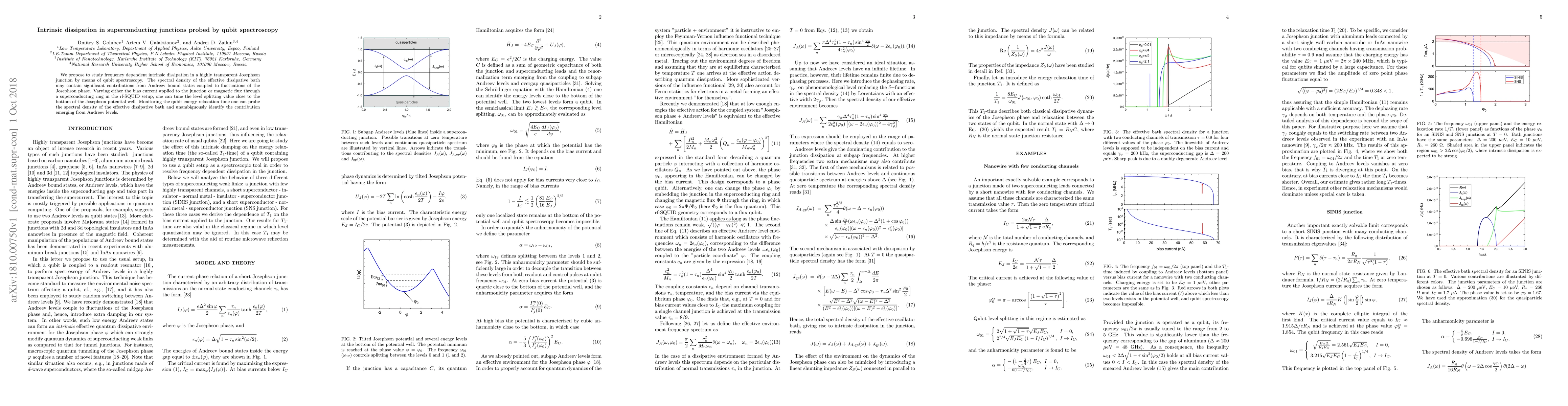 This research proposes using qubit spectroscopy to study intrinsic dissipation in a highly transparent Josephson junction, focusing on the spectral density of the effective dissipative bath. By tuning the bias current or magnetic flux, researchers aim to identify contributions from Andreev bound states to the qubit's energy relaxation time.