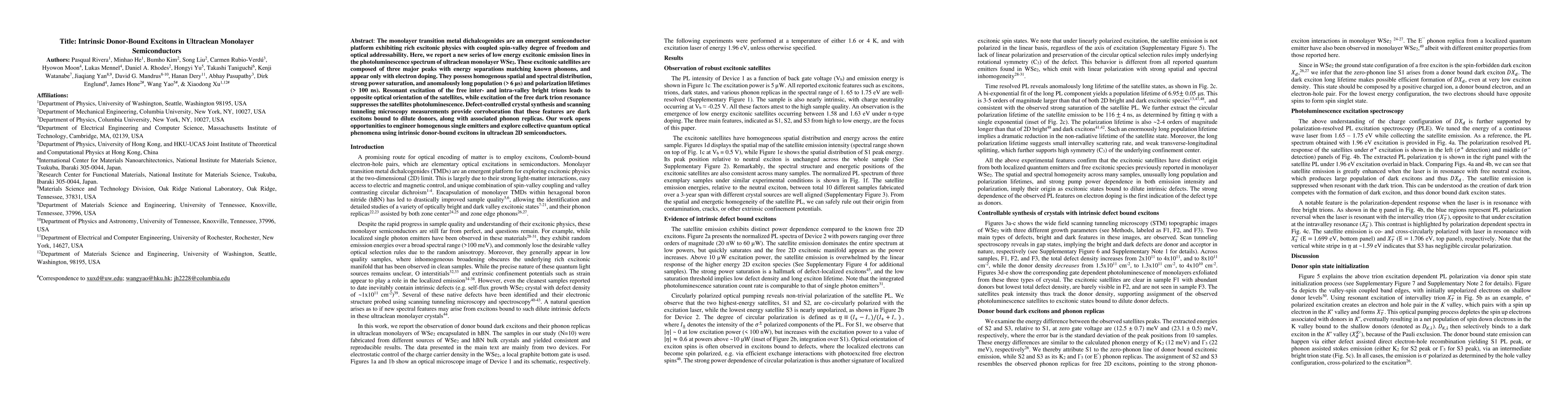 This paper reports the discovery of intrinsic donor-bound excitons in ultraclean monolayer WSe2, characterized by long lifetimes and strong power saturation. These excitons, bound to dilute donors, exhibit unique optical properties and open avenues for quantum optical applications in 2D semiconductors.