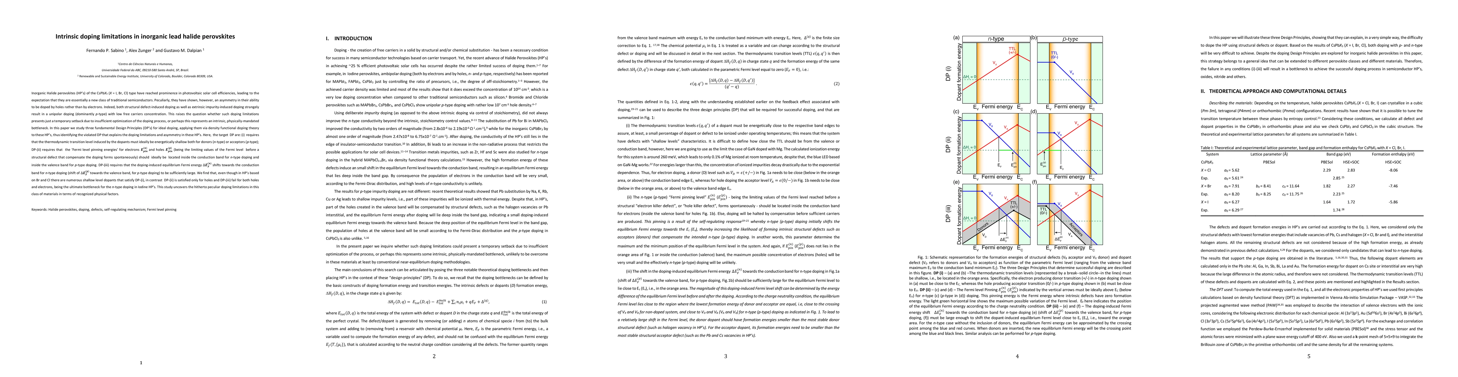 Inorganic Halide perovskites (HP's) of the CsPbX3 (X=I, Br, Cl) type have reached prominence in photovoltaic solar cell efficiencies. Peculiarly, they have shown, however, an asymmetry in their ability to be doped by holes rather than by electrons. Indeed, both structural defect-induced doping as well as extrinsic impurity-induced doping strangely result in a unipolar doping (dominantly p-type) with low free carriers concentration. This raises the question whether such doping limitations presents just a temporary setback due to insufficient optimization of the doping process, or perhaps this represents an intrinsic, physically-mandated bottleneck. In this paper we study three fundamental Design Principles (DP's) for ideal doping, applying them via density functional doping theory to these HP's, thus identifying the violated DP that explains the doping limitations and asymmetry in these HP's. Here, the target DP are: (i) requires that the thermodynamic transition level induced by the dopants must ideally be energetically shallow both for donors (n-type) or acceptors (p-type); DP-(ii) requires that the 'Fermi level pinning energies' for electrons and holes (being the limiting values of the Fermi level before a structural defect that compensate the doping forms spontaneously) should ideally be located inside the conduction band for n-type doping and inside the valence band for p-type doping. DP-(iii) requires that the doping-induced equilibrium Fermi energy shifts towards the conduction band for n-type doping (shift towards the valence band, for p-type doping) to be sufficiently large. We find that, even though in HP's based on Br and Cl there are numerous shallow level dopants that satisfy DP-(i), in contrast DP-(ii) is satisfied only for holes and DP-(iii) fail for both holes and electrons, being the ultimate bottleneck for the n-type doping in Iodine HP's.