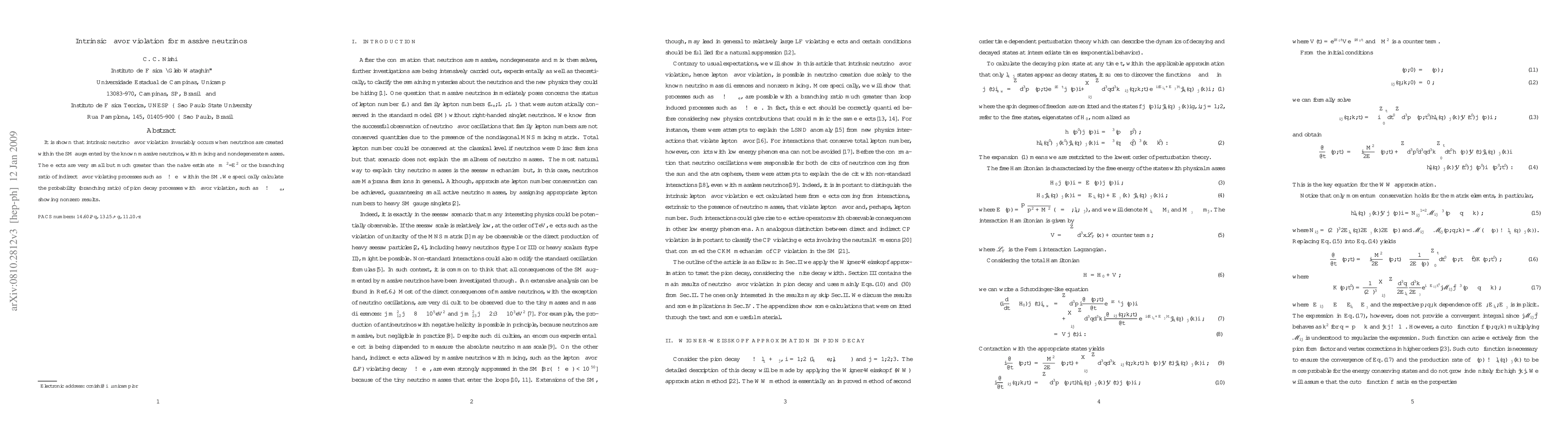 Summary: The study demonstrates that intrinsic neutrino flavor violation is an inevitable consequence in the Standard Model extended to include massive neutrinos with mixing and nondegenerate masses. The calculated probability of flavor-violating pion decay processes, like $\pi\to \mu\bar{\nu}_e$, reveals nonzero results, indicating effects greater than typical SM estimates.