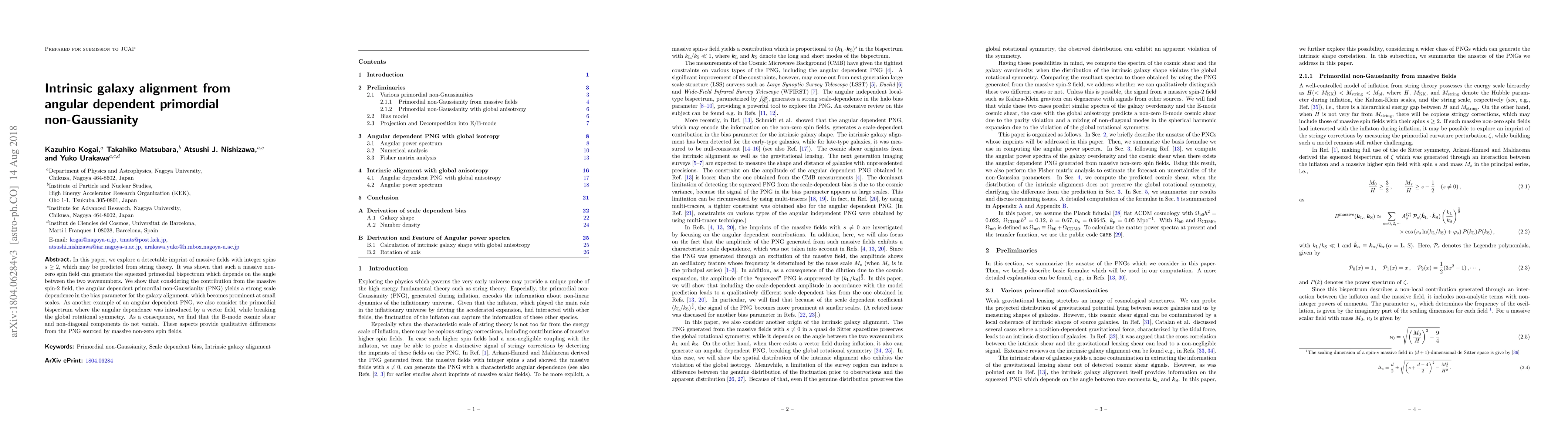 This paper explores a possible connection between string theory and galaxy alignment, finding that massive spin-2 fields can create an angular dependent primordial non-Gaussianity that affects small scales.