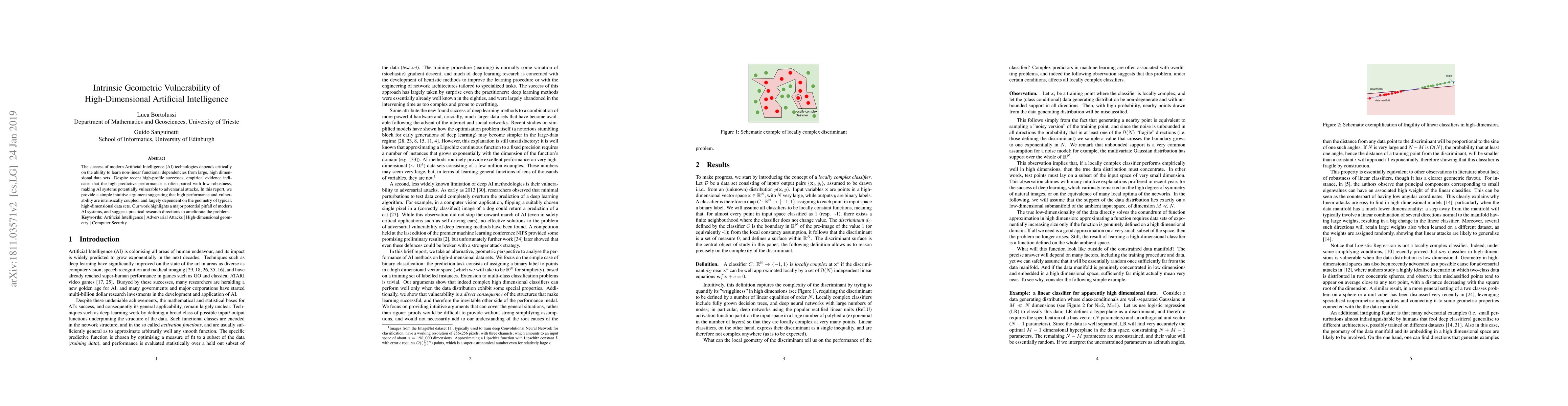 The success of modern Artificial Intelligence (AI) technologies depends critically on the ability to learn non-linear functional dependencies from large, high dimensional data sets. Despite recent high-profile successes, empirical evidence indicates that the high predictive performance is often paired with low robustness, making AI systems potentially vulnerable to adversarial attacks. In this report, we provide a simple intuitive argument suggesting that high performance and vulnerability are intrinsically coupled, and largely dependent on the geometry of typical, high-dimensional data sets. Our work highlights a major potential pitfall of modern AI systems, and suggests practical research directions to ameliorate the problem.