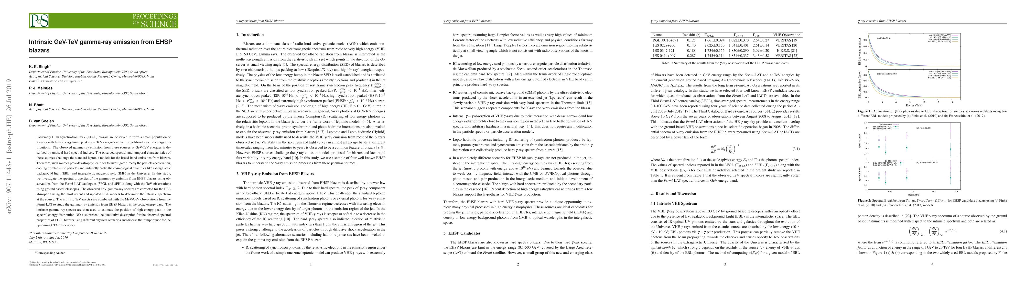 This paper investigates the intrinsic GeV-TeV gamma-ray emission from Extremely High Synchrotron Peak (EHSP) blazars, using Fermi-LAT and ground-based TeV observations. The study aims to determine the intrinsic gamma-ray spectra and discuss their implications for particle acceleration and cosmological factors like the extragalactic background light and intergalactic magnetic field.