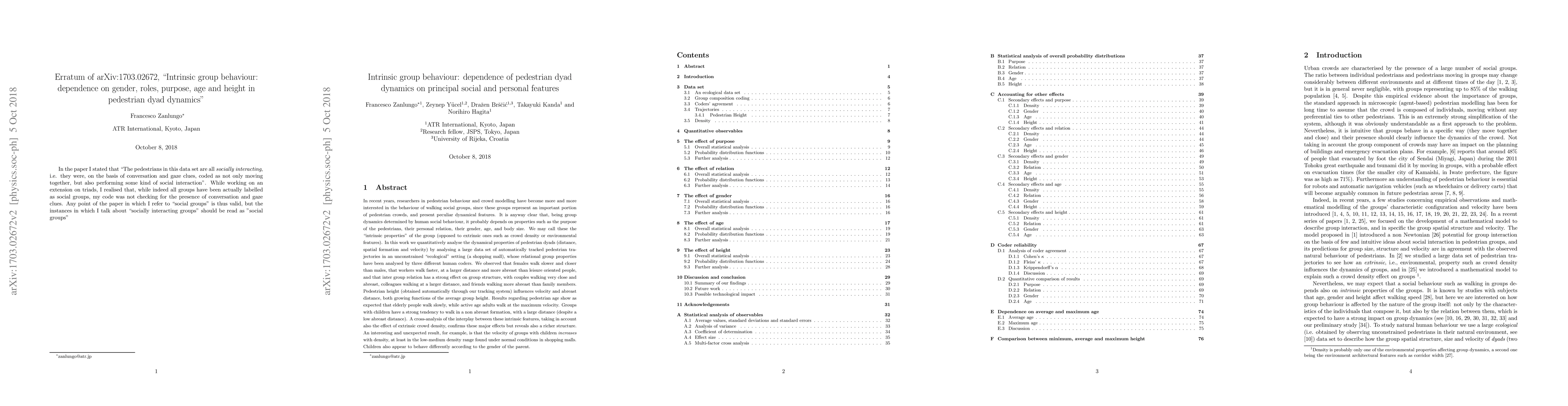 Being determined by human social behaviour, pedestrian group dynamics depends on "intrinsic properties" of the group such as the purpose of the pedestrians, their personal relation, their gender, age, and body size. In this work we quantitatively study the dynamical properties of pedestrian dyads by analysing a large data set of automatically tracked pedestrian trajectories in an unconstrained "ecological" setting (a shopping mall), whose relational group properties have been coded by three different human observers. We observed that females walk slower and closer than males, that workers walk faster, at a larger distance and more abreast than leisure oriented people, and that inter group relation has a strong effect on group structure, with couples walking very close and abreast, colleagues walking at a larger distance, and friends walking more abreast than family members. Pedestrian height (obtained automatically through our tracking system) influences velocity and abreast distance, both growing functions of the average group height. Results regarding pedestrian age show as expected that elderly people walk slowly, while active age adults walk at the maximum velocity. Groups with children have a strong tendency to walk in a non abreast formation, with a large distance (despite a low abreast distance). A cross-analysis of the interplay between these intrinsic features, taking in account also the effect of extrinsic crowd density, confirms these major effects but reveals also a richer structure. An interesting and unexpected result, for example, is that the velocity of groups with children {\it increases} with density, at least in the low-medium density range found under normal conditions in shopping malls. Children also appear to behave differently according to the gender of the parent.