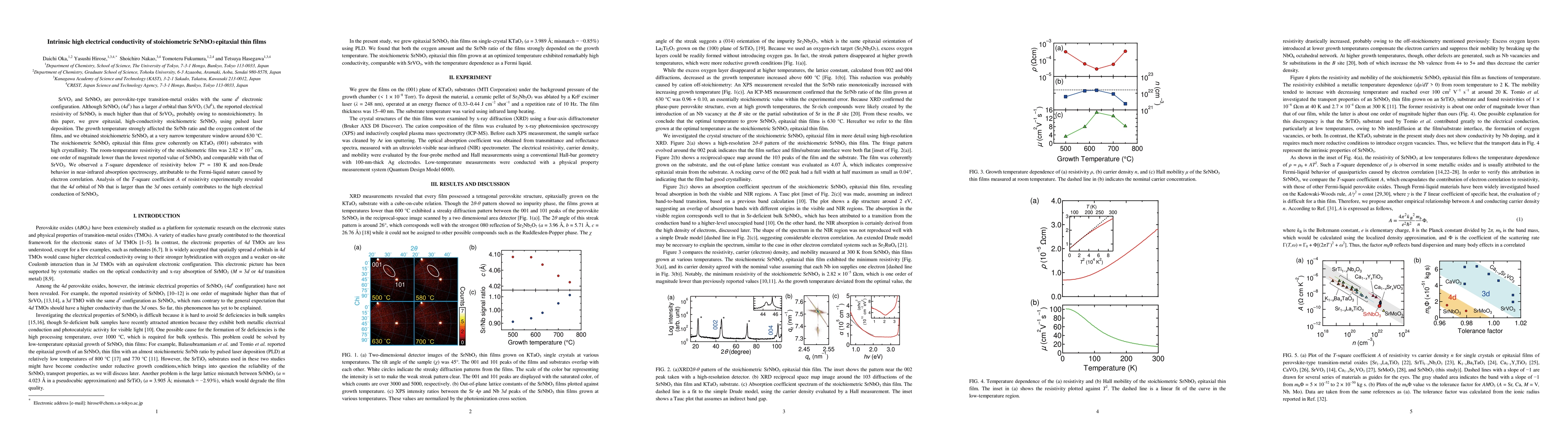 This paper reports the growth of epitaxial, high-conductivity stoichiometric SrNbO3 thin films using pulsed laser deposition, achieving a room-temperature resistivity one order of magnitude lower than previously reported values. The study highlights the intrinsic high electrical conductivity of stoichiometric SrNbO3, attributing it to the larger 4d orbital of Nb compared to the 3d orbitals in SrVO3.