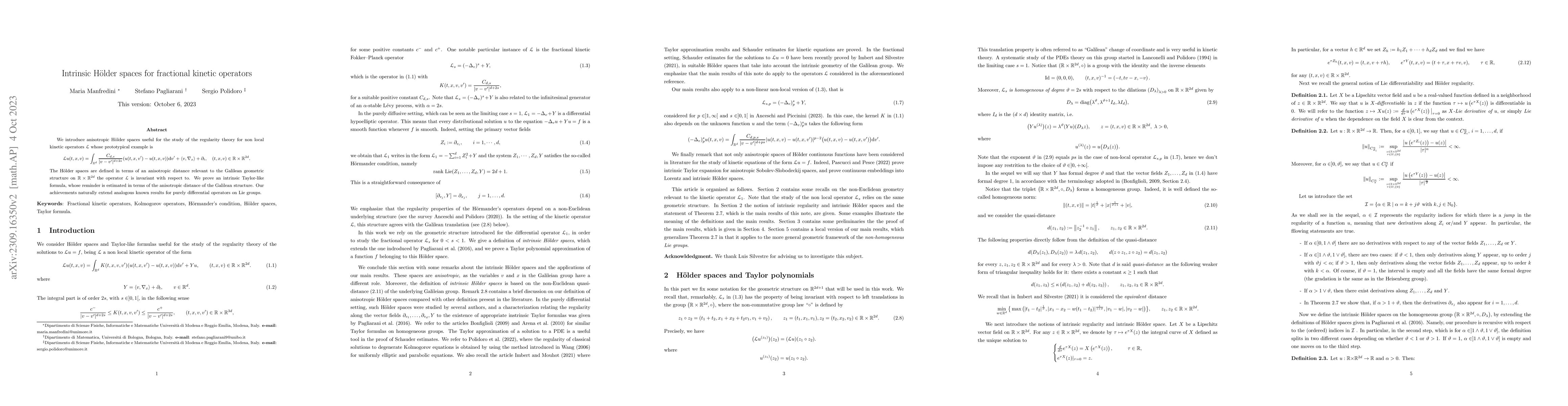 We introduce anisotropic H\"older spaces useful for the study of the regularity theory for non local kinetic operators $\mathcal{L}$ whose prototypal example is \begin{equation} \mathcal{L} u (t,x,v) = \int_{\mathbb{R}^d} \frac{C_{d,s}}{|v - v'|^{d+2s}} (u(t,x,v') - u(t,x,v)) d v' + \langle v , \nabla_x \rangle + \partial_t, \quad (t,x,v)\in\mathbb{R}\times\mathbb{R}^{2d}. \end{equation} The H\"older spaces are defined in terms of an anisotropic distance relevant to the Galilean geometric structure on $\mathbb{R}\times\mathbb{R}^{2d}$ the operator $\mathcal{L}$ is invariant with respect to. We prove an intrinsic Taylor-like formula, whose reminder is estimated in terms of the anisotropic distance of the Galilean structure. Our achievements naturally extend analogous known results for purely differential operators on Lie groups.