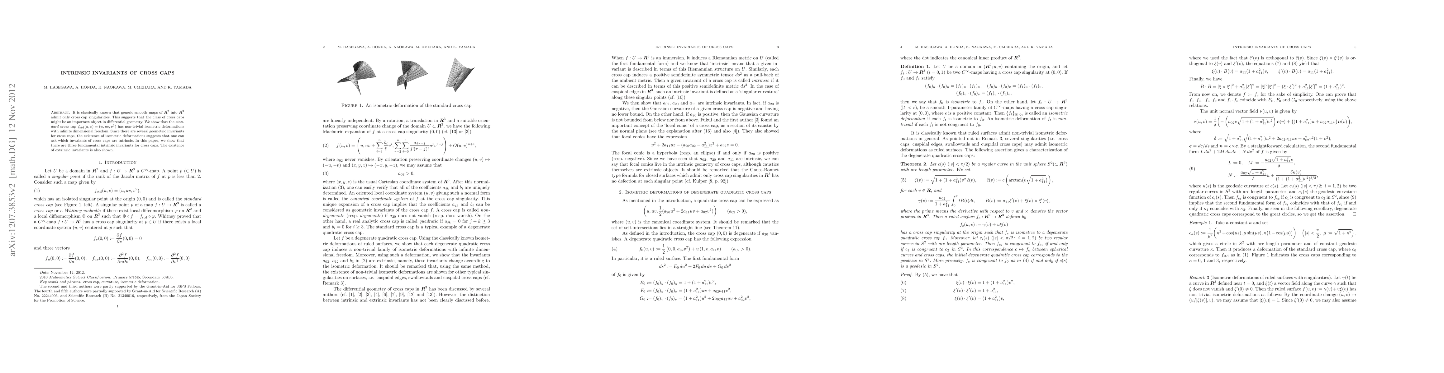 This paper investigates the intrinsic invariants of cross caps, revealing that the standard cross cap has non-trivial isometric deformations. It identifies three fundamental intrinsic invariants for cross caps while also demonstrating the existence of extrinsic invariants.