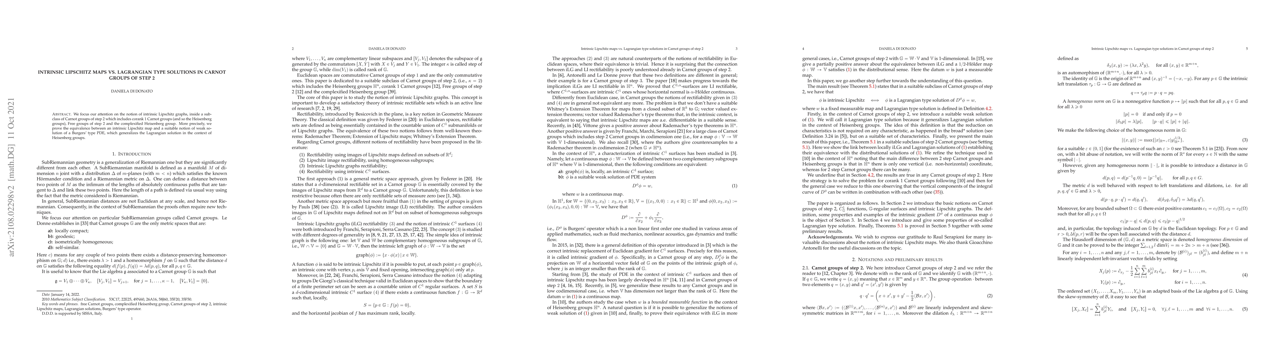 This paper investigates intrinsic Lipschitz maps within a subclass of Carnot groups of step 2, proving their equivalence to weak solutions of a nonlinear first-order PDE system, generalizing Lagrangian solutions in the context of Heisenberg groups.