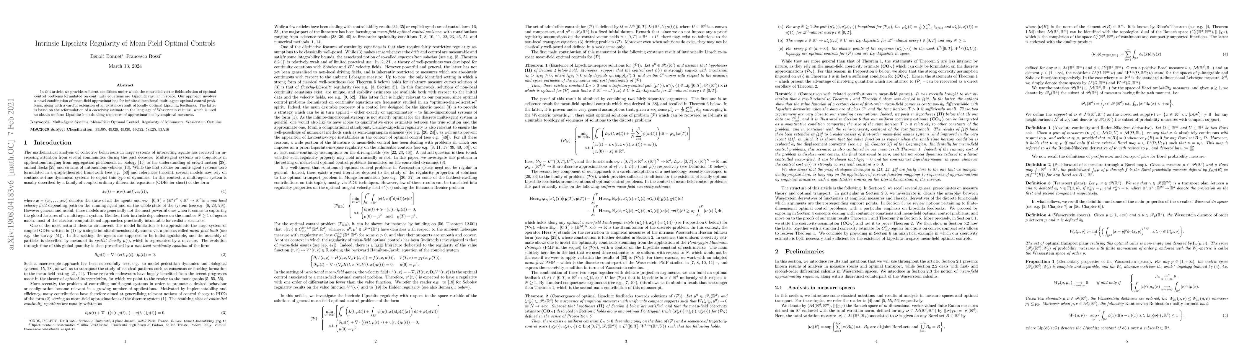 In this article, we provide sufficient conditions under which the controlled vector fields solution of optimal control problems formulated on continuity equations are Lipschitz regular in space. Our approach involves a novel combination of mean-field approximations for infinite-dimensional multi-agent optimal control problems, along with a careful extension of an existence result of locally optimal Lipschitz feedbacks. The latter is based on the reformulation of a coercivity estimate in the language of Wasserstein calculus, which is used to obtain uniform Lipschitz bounds along sequences of approximations by empirical measures.