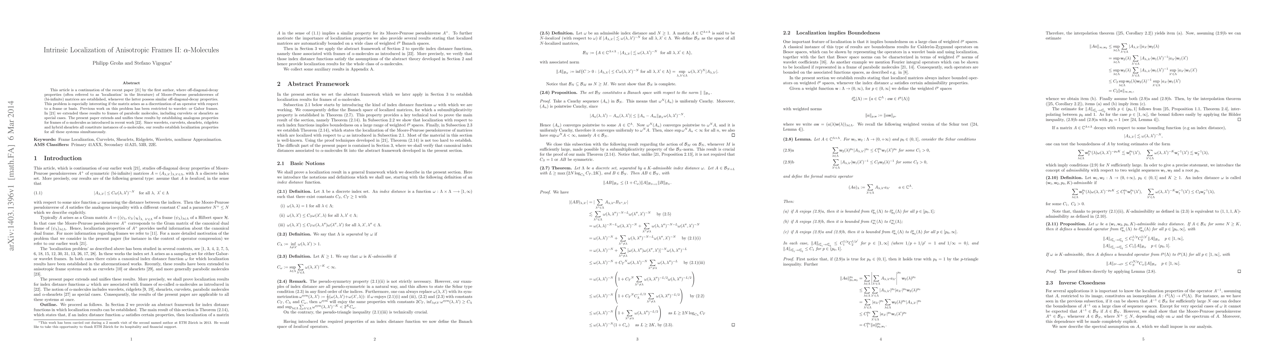 This article is a continuation of the recent paper [Grohs, Intrinsic localization of anisotropic frames, ACHA, 2013], where off-diagonal-decay properties (often referred to as 'localization' in the literature) of Moore-Penrose pseudoinverses of (bi-infinite) matrices are established, whenever the latter possess similar off-diagonal-decay properties. This problem is especially interesting if the matrix arises as a discretization of an operator with respect to a frame or basis. Previous work on this problem has been restricted to wavelet- or Gabor frames. In the previous work we extended these results to frames of parabolic molecules, including curvelets or shearlets as special cases. The present paper extends and unifies these results by establishing analogous properties for frames of $\alpha$-molecules as introduced in recent work [Grohs, Keiper, Kutyniok, Sch\"afer, Alpha molecules: curvelets, shearlets, ridgelets, and beyond, Proc. SPIE. 8858, 2013]. Since wavelets, curvelets, shearlets, ridgelets and hybrid shearlets all constitute instances of $\alpha$-molecules, our results establish localization properties for all these systems simultaneously.
