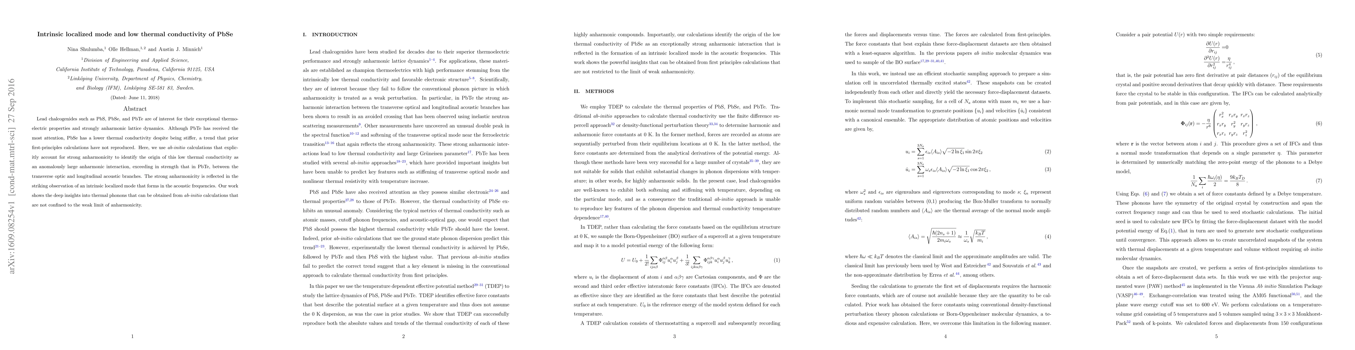 Researchers found that PbSe has a lower thermal conductivity than expected due to unusually strong anharmonic interactions between its lattice vibrations, leading to the formation of an intrinsic localized mode.