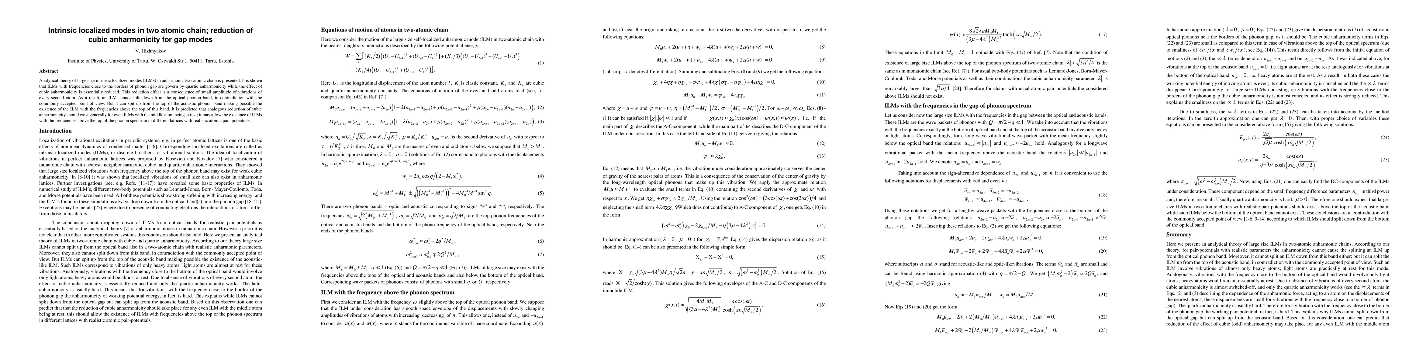 This paper presents an analytical theory for intrinsic localized modes (ILMs) in an anharmonic two-atomic chain, showing that ILMs near the phonon gap are governed by quartic anharmonicity with reduced cubic anharmonicity effects, allowing ILMs to exist above the acoustic phonon band. The reduction of cubic anharmonicity is due to the small amplitude vibrations of every second atom, challenging the conventional view that ILMs split from the optical phonon band.